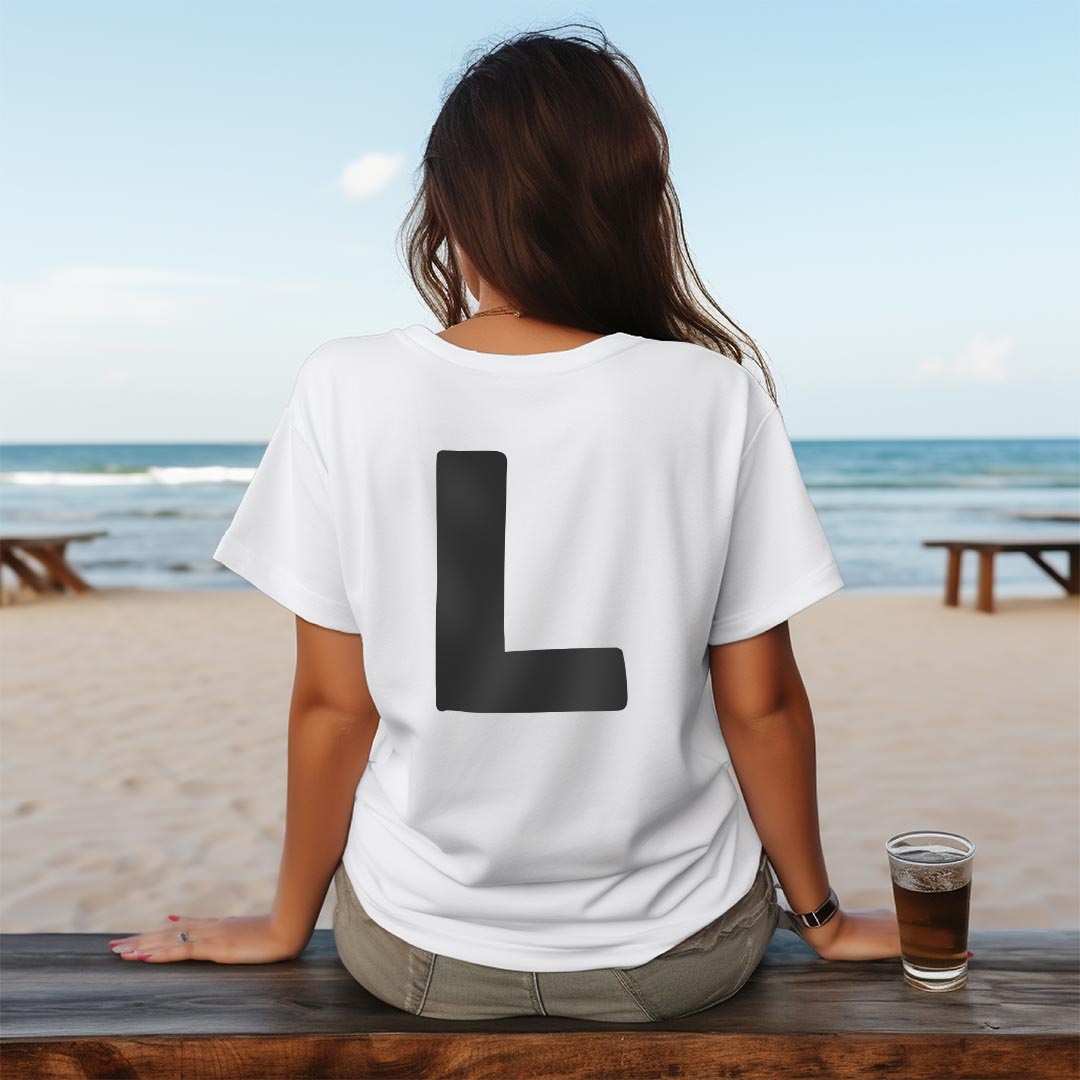 レディース ドライバックプリントTシャツ ホワイト 半袖 4.1オンス ジム トレーニング スポーツ 運動会 ドライアスレチック UVカット 紫外線遮蔽 吸水速乾 デザイン Tshirt M L 019192 文字 l アルファベット