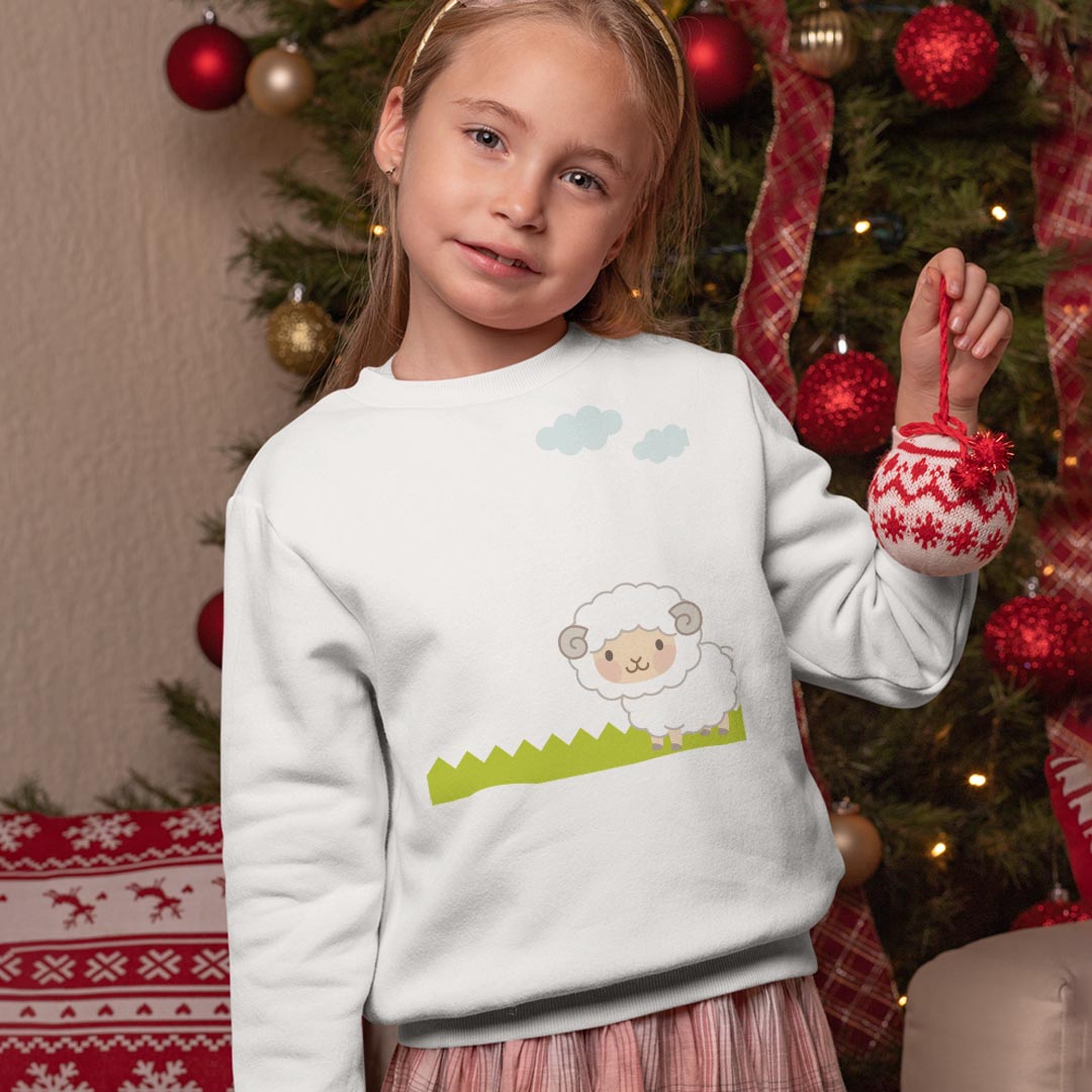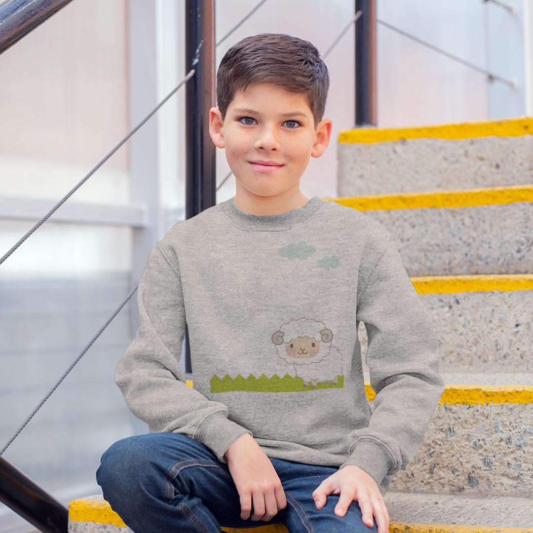 選べる5カラー スウェット トレーナー キッズ 男女兼用 男の子 女の子 ユニセックス unisex 長袖 デザイン リブ ホワイト ブラック 白 黒 グレー ネイビー ベージュ 110 130 150 trainer sweat 007191 ひつじ キャラクター