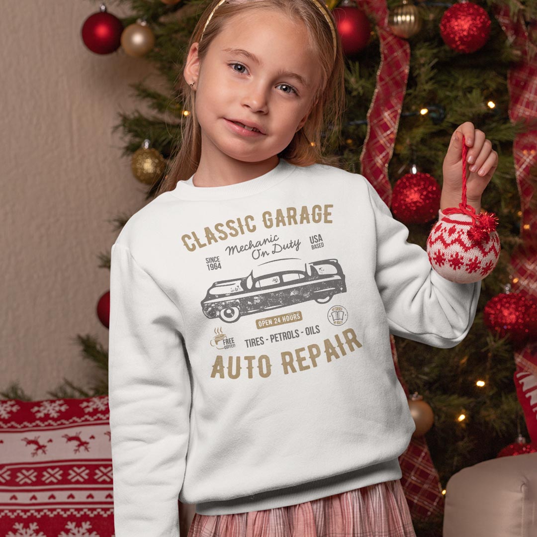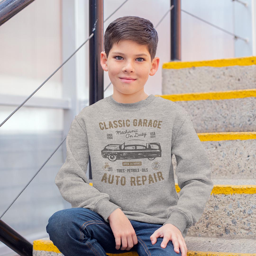選べる5カラー スウェット トレーナー キッズ 男女兼用 男の子 女の子 ユニセックス unisex 長袖 デザイン リブ ホワイト ブラック 白 黒 グレー ネイビー ベージュ 110 130 150 trainer sweat 017530 車 ヴィンテージ レトロ