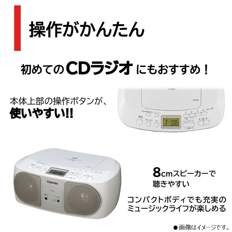 保証情報 等 ▼東芝 CDラジオ TY-C15(S) シルバー 【メーカー保証】1年間 【付属品】電源コード、取扱説明書(保証書付き) 操作かんたん!初めてでも使いやすいCDラジオ ■『ワイドFM』対応 ラジオAM・FM2バンドを受信。AM放送が入りにくいところや災害時にFM周波数を用いたAM番組も聞くことができる『ワイドFM』に対応。 ※『ワイドFM』とは、AMラジオ放送の対象地域において、放送区域内の災害対策や難聴対策のためにFMの周波数を利用して、補完的にAM番組を放送する「FM補完放送」の呼称です。 ■はじめてでも使いやすい 大型ボタンを本体上部にまとめて配置。操作もシンプルで、初めてCDラジオを使う方にもやさしい設計です。 ■8cmスピーカーでコンパクトでも聴きやすい 小さなボディでも充実のミュージックライフが楽しめます。 ■一体型グリップで持ち運びラクラク 軽量ボディに一体型グリップで、お子さまでも持ち運びラクラク。 ■便利な再生機能 CDのリピート・プログラム・ランダム再生が可能。語学練習にも役立ちます。 ■お好みボタンでラジオ選局もかんたん ボタン一押しで簡単登録。ラジオ選局が簡単にできます(AM/FM各4局)。 CDプレーヤー部 チャンネル数 2チャンネルステレオ リピート再生 1曲/全曲 プログラム再生 20曲 ランダム再生 ● ラジオ部 受信周波数※1 AM:531kHz〜1,710kHz FM:76MHz〜108MHz デジタルシンセチューナー ● プリセット選局 AM4/FM4 サーチ選局 ● 共通部 スピーカー※1 8cmφコーン型×2 入力/出力端子 ヘッドホン端子:ステレオミニジャック 外部入力(LINE-IN):ステレオミニジャック 実用最大出力※1 1W+1W 電源※1 AC100V、50-60Hz DC9V、単2形乾電池×6本(別売) 電池持続時間※1 東芝アルカリ乾電池使用時 CD再生時:約20時間 ラジオ受信時:約40時間 消費電力※1 11W 最大外形寸法※1 幅260×高さ108×奥行209mm(突起物含まず) 質量※1 約1.3kg(乾電池含まず) メーカー保証 1年間 付属品 電源コード、取扱説明書(保証書付き) ※仕様及び外観は改良のため予告なく変更する場合があります。 ※1:(社)電子情報技術産業協会の定める「JEITA規格」による測定値です。