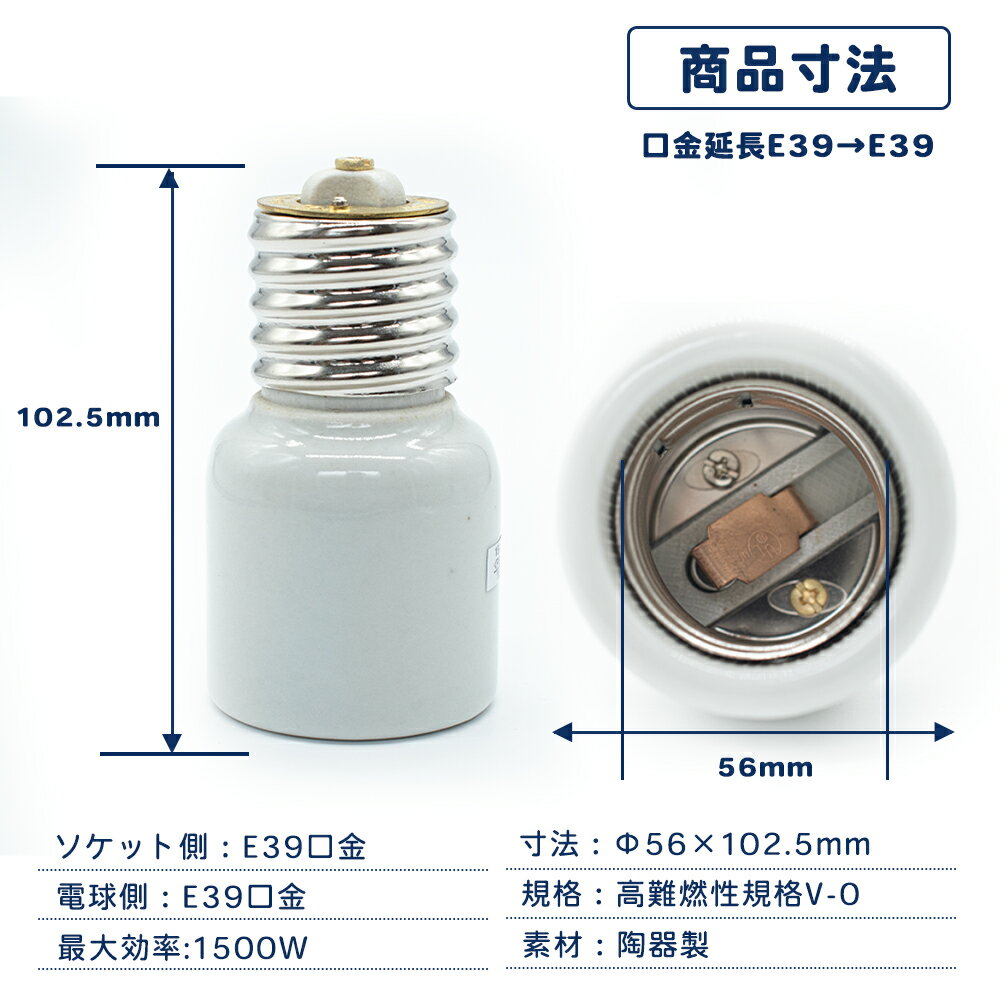 2個 セラミック E39→E39 延長アダプター 口金変換 陶器アダプター E39口金延長アダプター E39→E39電球 ソケット 口金 照明補助器具 1500W 660V口金変換アダプター 延長アダプタ E39 を E39 に延長 陶器製 (E39→E39 延長アダプター)