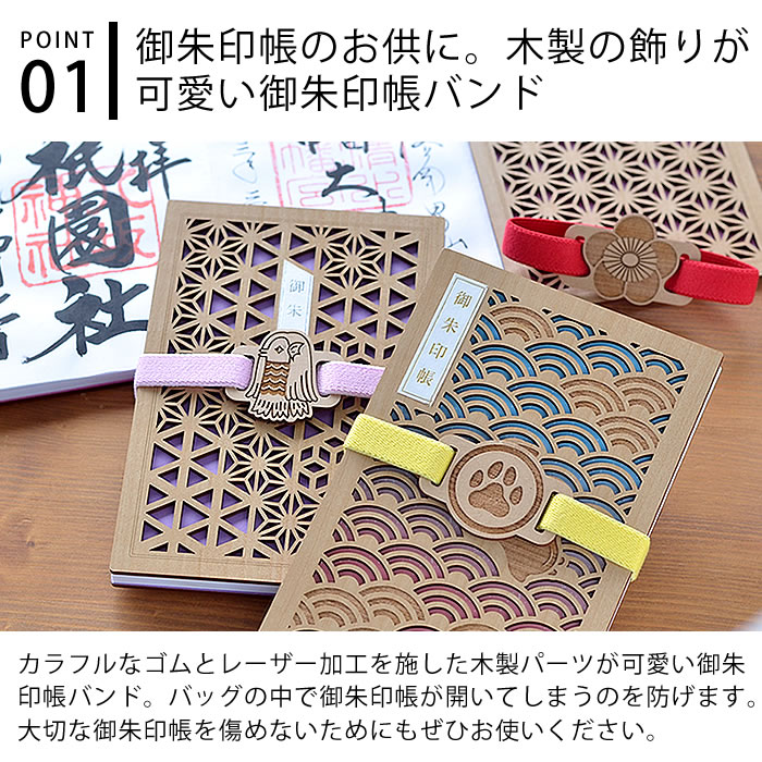 御朱印帳 バンド CRU-CIAL クルーシャル ゴムバンド ご朱印帳 木製 木 だいふく 梅 千鳥 ふくろう アマビエ 桔梗 犬張子 招き猫 299 うさぎ 小槌 狐面 おしゃれ 朱印帳 かわいい ブックバンド ノート 手帳 CRU-御朱印帳