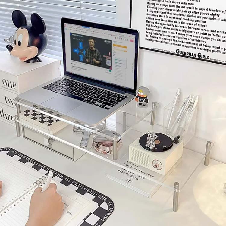 美しい透明感 ノートパソコン台 机上ラック パソコン アクリル モニター台 モニタースタンド スチール モニター台 電話 プリンタ 台 シンプル モニターテーブル 台 リモートワークにも最適 敬老の日 祖母