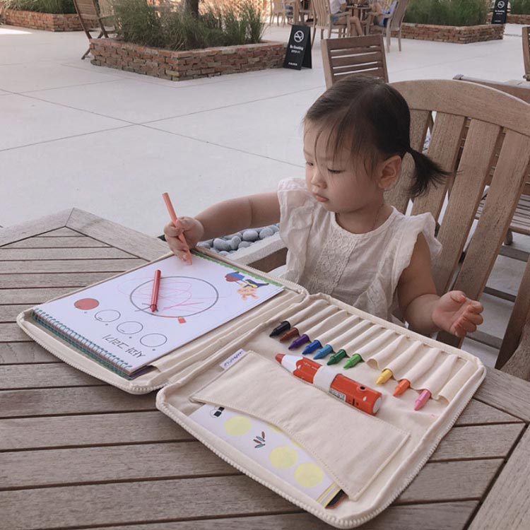 収納バッグ お道具箱 お絵描きバッグ 持ち運び ペン 子供 お絵かきバッグ お絵描きセット お出かけ キッズ おもちゃ お絵かきバッグ 色鉛筆 ぬりえ 室内遊び 文房具ケース 男の子 プレゼント 習い事 女の子 おえかきバッグ ベージュ 綿麻 手提げバッグ お出かけバッグ