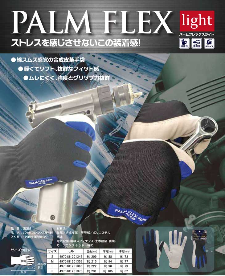 【★送料無料★】手袋 アトム パームフレックスライト 2058 業務用手袋 特価10双セット 電気設備/機械メンテナンス/土木建築/農業/ガーデニング/レジャーなど 合成皮革手袋
