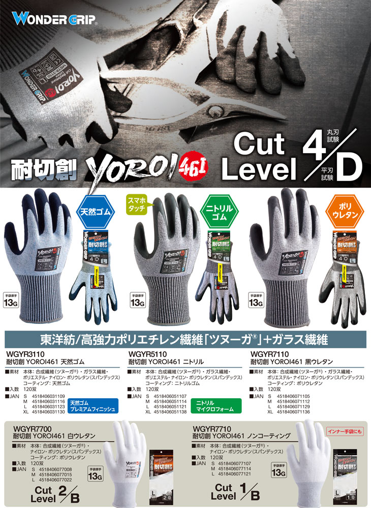 【★メール便送料無料★】耐切創手袋 手袋 作業用手袋 ユニワールド WGYR7110 耐切創YOROI461 黒ウレタン 切れにくい 耐切創グローブ 災害活動用