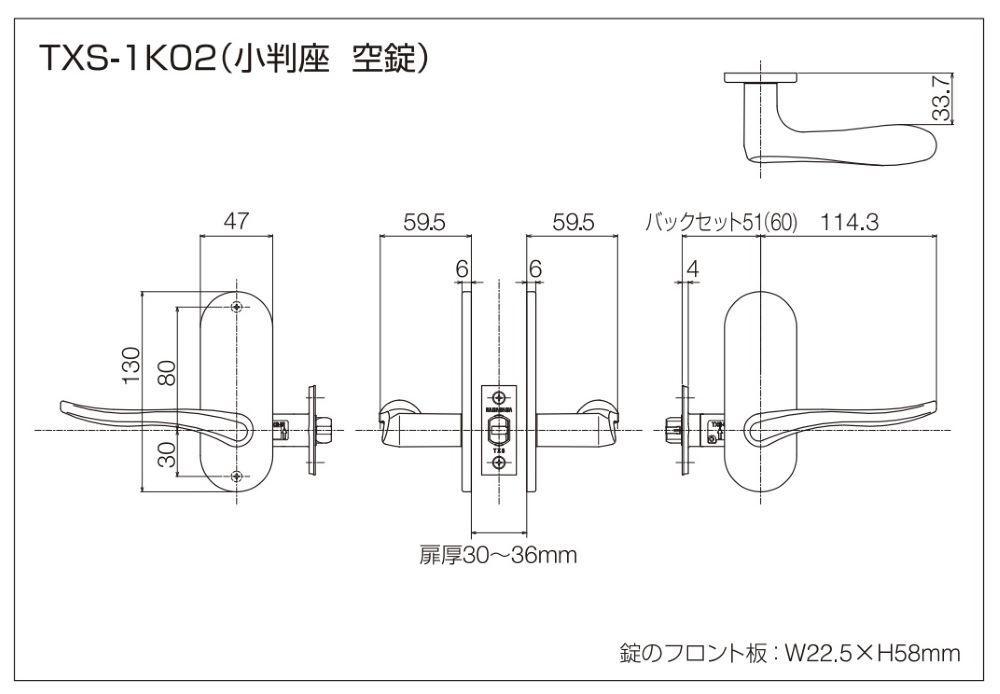 長沢製作所(NAGASAWA) GMシリーズ室内用レバーハンドル 小判座 空錠 TXS-1K02 BS51mm