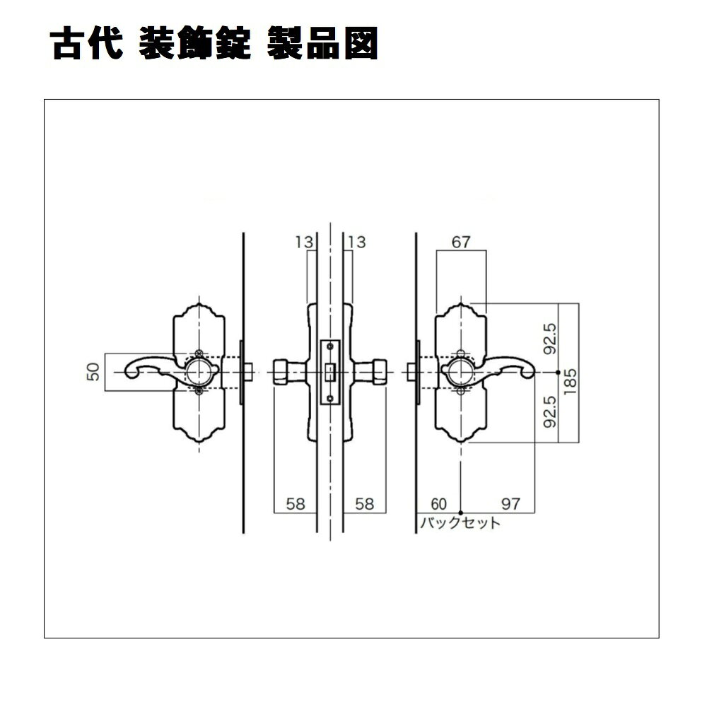 長沢製作所 古代 装飾空錠 エンプレス3号 21062GB バックセット60mm 適合ドア厚30-45mm