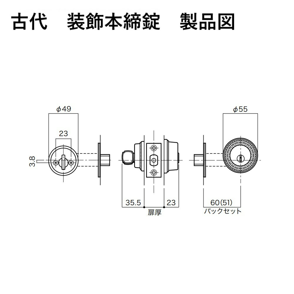 長沢製作所 古代装飾本締錠 チューブラ本締錠 22045GBバックセット60mm 適合ドア厚30-40mm