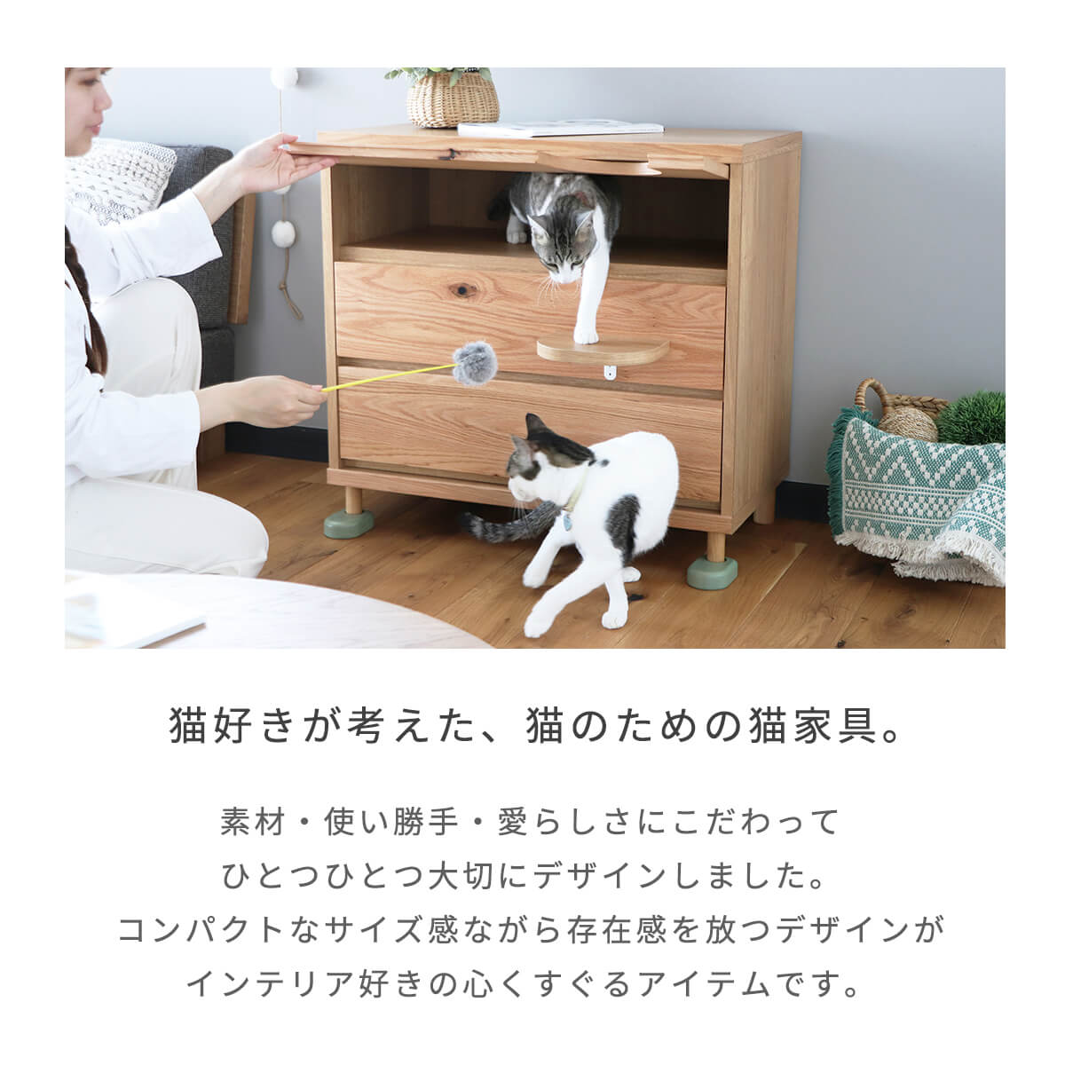 【P10倍&5%OFFクーポン配布中!】猫 チェスト ローチェスト キャビネット 猫家具 完成品 国産 3段 無垢材 天然木 ペット家具 ネコ用品 収納付き キャット おしゃれ ペット用品 棚 引き出し 北欧 ステップ付き 収納 タンス トンネル型 幅75 「商:大」「才:9」