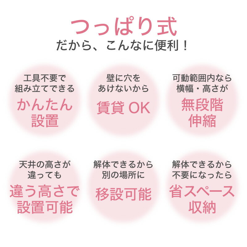 サイズ(cm) (約)幅55〜90cm/高さ167〜297cm 材質 ・パイプ部:スチール(粉体塗装) ・樹脂部:ABS樹脂、ポリプロピレン ・部品:シリコン ・キャップパッド部:ポリ塩化ビニル カラー ホワイト/ブラック 原産国 中国 備考 ※組立品 ・耐荷重(約):棚1枚あたり5kg 幅55〜90cm/高167〜297cm 支柱2本連結では【高167〜230】 支柱3本連結では【高234〜297】 ※離島は別途送料がかかり、お見積りが必要となります。 ご購入金額の合計が9,800円以上で送料無料となります。この商品は送料無料です。一部地域を除きます。この商品は玄関先でのお渡しとなります。トラックからの荷下ろしの際にお手伝いを頂く場合がございますのでご協力お願い致します。>>大型商品配達の注意点※ご購入前に必ずご確認ください