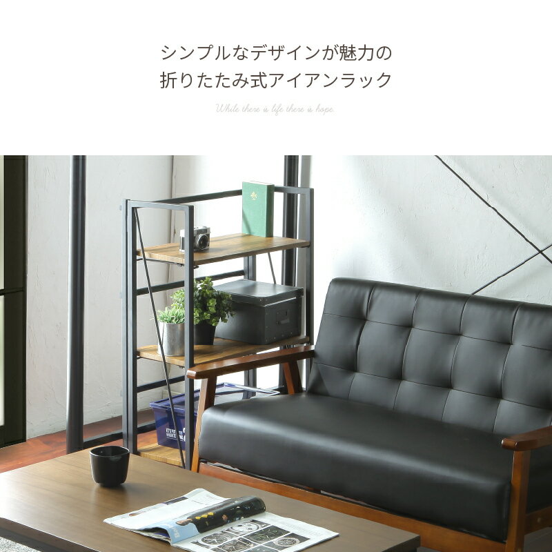 【11/20 20:00〜 10%OFFクーポン】折りたたみ式3段アイアンラック <コナー> 収納 オープンラック ラック3段 幅60 奥行31 高さ93 シェルフ アイアンフレーム アンティーク調 北欧 おしゃれ 木目 アイアン 棚 オープンラック スチールラック 西海岸