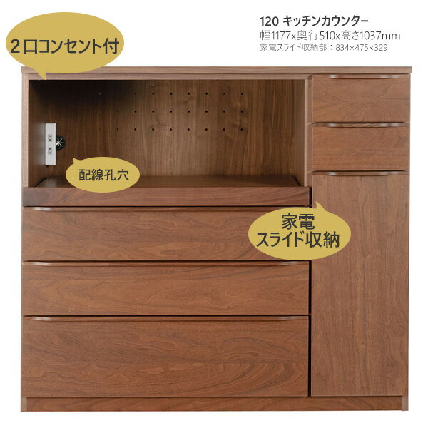 えっ!?【ポイント増量&お得クーポン】 キッチン カウンター スライド式 台所収納 北欧風 幅120cm コンセント 無垢材 「Rumor ルモール」 2材質対応 レグナテック 開梱設置 【受注生産品】