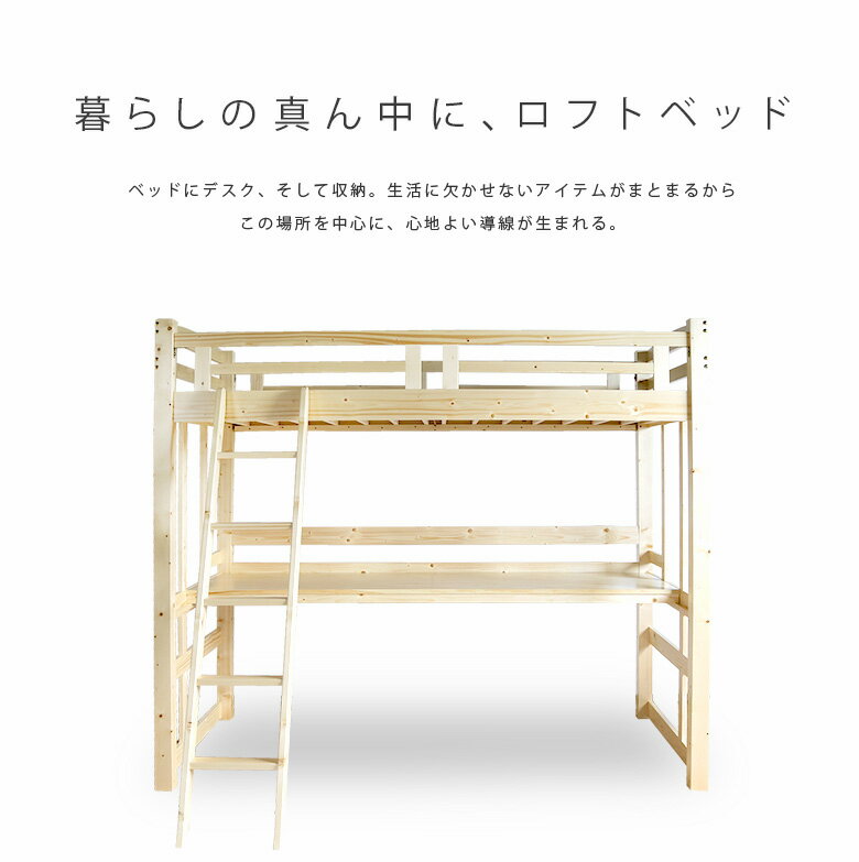 ロフトベッド ハイタイプ シングル 高さ186.5cm 学習机 システムベッド 机付き ベッド下収納 デスク付き 木製 子供 大人 ベッド シングルベッド 収納付き ワゴン付き ラック付き セット ベッドフレーム はしご付き 極太柱 学生寮 施設 学習デスク
