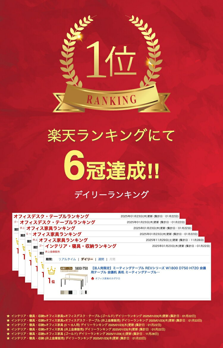 商品説明 ●多くのニーズに応える、バリエーション豊富なREVシリーズのスタンダードな長方形タイプのW1800×D750mmサイズです。 ●スタンダードタイプのミーティングテーブルは、2人から6人までの会議用テーブルに向いています。 ●重厚感のある流行りのブラックフレームと、清潔感があり様々な空間に幅広くマッチするホワイトフレームの2色からお選びください。 ●天板カラーは、ブラックとホワイトのどちらのフレームに合わせても、違和感が出ないように厳選されたカラー展開となっています。 ●各脚にはアジャスターが付いているので、ガタツキを防ぎ、床にも傷がつきにくい仕様となっています。 ●オフィスの会議室、ミーティングスペース、休憩室と、場所を選ばずにオススメできるシリーズです。 商品情報 ■サイズW1800×D750×H720mm ■重量32kg ■梱包サイズ梱包1:W1840×D790×H40mm梱包2:W1720×D120×H50mm梱包3:W730×D780×H175mm ■梱包重量天板:19kg支柱:6.8kg脚:11.6kg ■カラー【フレーム】ホワイト、ブラック【天板】ホワイト、ブラック、ナチュラル、フォレスト ■材質天板:18mm厚パーティクルボード+低圧メラミンエッジ:PVC脚部:スチール粉体塗装 ■組立有無有り(組立品) ■配送ただし、配送時の状況により、エレベーターがあっても、駐車やワンマン配送の影響で、1階でのお渡しになる可能性があります。また、配送の時間指定はできませんので、予めご了承ください。 ■設置基本的に商品の組立・設置はお客様自身で行っていただきますが、現場で設置をさせていただくサービス(有料)もございます。ご希望の場合は、お見積もりの際にお問い合わせください。なお、組立・設置サービスをご利用の際の納品日は、東京23区内で1週間程〜、その他の地域で3週間程〜いただいております。 ■納期目安北海道:5〜8日程度、東北:3〜5日程度、関東・中部:3〜4日程度、近畿・中国・四国:4〜6日程度、九州:5〜7日程度、沖縄:2週間程〜となっております。 ■備考光の加減などにより指紋や汚れが目立つ場合があります。 オフィスに合わせてフレームと天板のカラーを選べる、バリエーション豊富なREVシリーズです。 用途に合わせて形とサイズを、オフィスのテイストに合わせてフレームと天板カラーをお選びいただけます。 ※一部、イメージに別サイズを使用しております。 アジャスター付き ちょっとしたガタツキであれば、アジャスターで調整可能です。また、床の傷つきも抑えてくれますので安心。 ブラックフレーム 重厚な雰囲気を演出する流行りのブラックフレームは、同系統の椅子を合わせるとよりお洒落な空間になります。 ホワイトフレーム 優しい雰囲気のホワイトフレームは、オフィスだけなく店舗や塾などでも明るい印象を与えてくれるでしょう。関連商品【法人宛限定】ミーティングテーブル REVシリーズ W1500 D75...【法人宛限定】ミーティングテーブル REVシリーズ W1200 D75...【法人宛限定】ディー ミーティングテーブル W1800 D900 H7...36,080円31,680円33,880円【法人宛限定】ミーティングテーブル REVシリーズ W2100 D90...【法人宛限定】ディー ミーティングテーブル W1200 D750 H7...【法人宛限定】【国内メーカー品】背合板キャスター付きミーティングチェア...56,980円23,980円33,880円【法人宛限定】エランサ スクエア テーブル W1800 D900 H7...【法人宛限定】カグクロ ミーティングテーブル TKシャープタイプ W1...【法人宛限定】ディー ミーティングテーブル W1500 D750 H7...31,680円19,990円30,580円配送料 ★本州・四国・九州地域に限り、基本送料無料となっております(北海道・沖縄・離島地域は別途見積)。 ★お届け先が、北海道・沖縄・離島地域となる場合は、各種条件により料金が異なります。 ★ご注文いただいた内容について、別途、正式な送料を含めた確認メールをお送りさせていただきます。