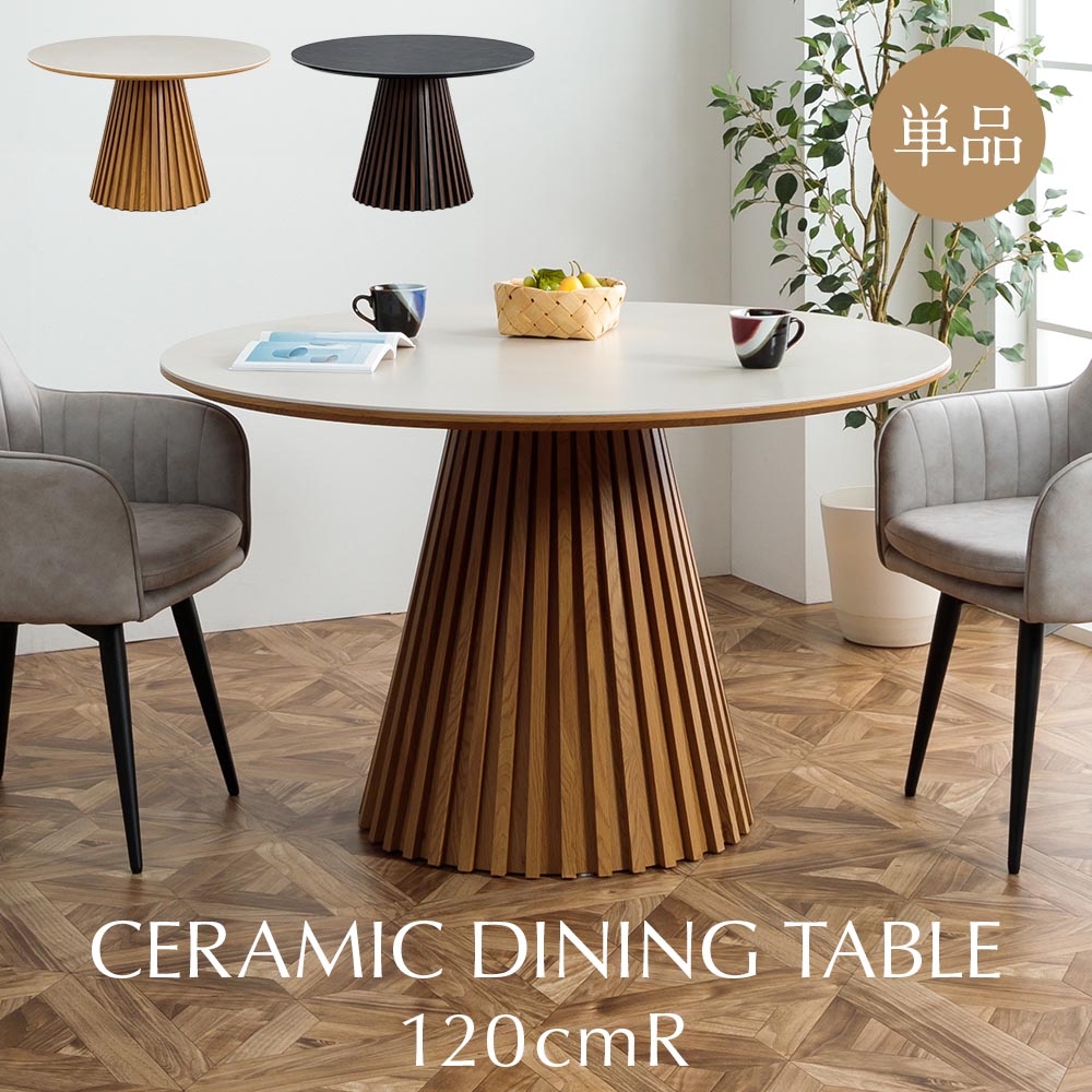 ダイニングテーブル セラミック天板 丸型 円形 単品 幅120 直径120 4人 高耐久性 モダン 高級感 和モダン 格子 和洋 おしゃれ ラウンドテーブル ホワイト ダークグレー ナチュラル ウォールナット柄 ジャパンディ