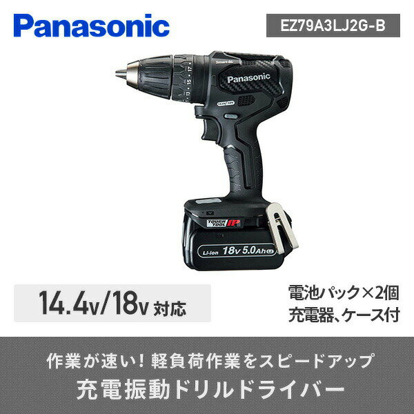 充電振動ドリルドライバー デュアル(14.4V/18V) スマートBL (電池パック×2、充電器、ケース付) EZ79A3LJ2G-B ブラック 工具 DIY 電動工具 ドライバードリル 電動ドライバー 電動ドリル 振動機能 パナソニック Panasonic 【送料無料】