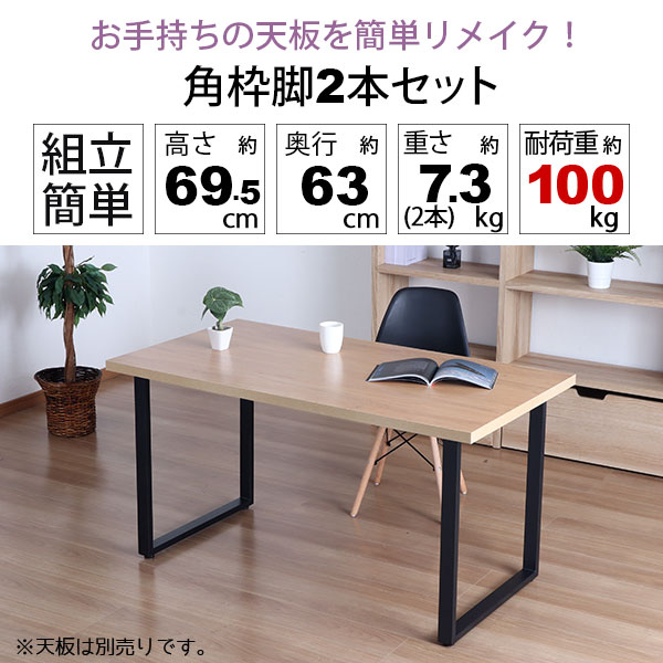 テーブル角枠脚 2本セット 高さ約70cm 奥行約63cm アジャスター付(※天板別売り) の説明 お手持ちの天板を簡単リメイク! 角枠脚2本セット 組立簡単 高さ約69.5cm 奥行約63cm 重さ約7.3kg(2本) 耐荷重約100kg ブラックフレームがおしゃれ! デザイン性のあるブラックフレームの脚がおしゃれ! 重厚で安定感のある角枠脚 一般的な椅子に合わせやすい高さ約69.5cm DIY・リメイクに お好きな天板に取り付けてオリジナルテーブルをDIY♪ 古いテーブルのリメイクにもおすすめです。 簡単にテーブルが作れます! ※お持ちの天板へ取り付ける場合ネジは別途にご用意ください。 お好みの天板に取り付けてオリジナルテーブルが作れます! 存在感のある重厚なブラック脚 角枠脚2本セット 自由な幅サイズのテーブル・デスクに取り付け可能 奥行は約65cm以上推奨 ダイニングテーブルや奥行ゆったりのワークデスクなどにおすすめ アジャスター付き 床のガタツキを微調節できるアジャスターが標準装備されているので、安定して快適にお使いいただけます。 耐荷重約100kg(2本同時使用時) 1つの取付プレートにつき4箇所しっかりボルトで固定するので、安定感のある脚に組立てできます。 取付プレート(約):8.5cm×8.5cm 穴サイズ(約):幅1cm×奥行0.8cm(楕円形) ネジ穴の中心間(約):6.4cm ※取付用のボルトは付属しません。 お手持ちの天板に取付けする場合は・・・ お客様ご自身にてホームセンター等で販売している市販の取付用ボルト (ネジ)のご用意をお願い致します。 最適なサイズ M6規格(径6mm)を推奨しております。 ボルト(ネジ)の長さはお手持ちの天板の厚みによって変わります。 一般的には板の厚みの8割程度の長さがよいとされています。 耐荷重は天板サイズ等により異なりますのでお客様ご自身でのご判断をお願い致します。ネジの長さは板厚の8割程度! 外寸(約):幅8.5×奥行63×高さ69.5cm 脚部太さ(約):5×2.5cm 取付プレート(約):8.5×8.5cm 取付プレート穴サイズ(約):幅1×奥行0.8cm(楕円形) アジャスターサイズ(約):直径3.6cm 耐荷重(約):100kg(2本同時使用時) 製品重量(約):7.3kg ※サイズや重量はスタッフによる手作業での計測のため実物と若干の誤差がある場合がございます。 おしゃれなデザイン角枠脚2本セット テーブル天板に取付け可能なテーブル脚 (標準高さ) ブラックフレームが存在感抜群 重厚でしっかりとした脚なので存在感抜群 お好きな天板に取り付けてオリジナルテーブルが作れる! お手持ちのお気に入りの天板に取り付けて 全体耐荷重約100kg しっかり支える!頑丈な脚 微調節可能なアジャスター付き テーブルのガタツキを微調節できるアジャスターが装着 ■商品について一言説明 テーブル 脚 パーツ 約70cmは、2本セットのテーブル脚(角枠脚タイプ)です。 ■利用シーン、デザイン テーブルなどの板に取り付け可能な脚です。(テーブル脚のみの販売です) お好きな板に取り付ければ、オリジナルのテーブルを作成可能♪ 住宅やオフィスのリノベーションやリフォーム、テーブルのリメイクの際にも選ばれています! 是非この機会にDIYをお楽しみ下さい。 ・テーブル用天板に取り付けて脚として使用できる、角枠タイプのテーブル脚(2本セット)です。 ・別売りの天板やお手持ちの天板を取り付けて、オリジナルのテーブルを作ることができます。 ・脚の高さは69.5cmのレギュラータイプ。ダイニングテーブルなどを作るのにおススメです。 ■特徴、機能 ・推奨ネジ規格について: M6規格(直径6mm)のネジを推奨しております。 ・ネジの長さについて: 一般的にはテーブル天板の8割程度の長さが良いと言われています。 ※当商品にネジは付属しておりません。 ネジはお近くのホームセンターなどでお買い求めください。 ・軽量で女性でも簡単に取り付け可能だけど、しっかりと安定した脚です! ・落ち着きのあるマットな質感の仕上がり。お部屋にシックな雰囲気を与えてくれます。 ・スチール製の太いフレームは、しっかりと天板を支えるので安定感抜群! ・脚先にアジャスターが付属しており、ガタ付きを調整できます。 ■サイズ 脚の高さ:69.5cm 脚の奥行き:63cm 脚の太さ:幅5cm×厚み2.5cm 取り付け部のプレート:8.5cm×8.5cm ■重量 約7.3kg(1本あたり:約13.65kg) ■耐荷重 約100kg ※静止時平面耐荷重です。 ※測定値であり保証値ではありません。 ※実際にはテーブルの形状や脚の設置個所、ネジの長さ等により耐えられる重量は異なります。 上記耐荷重はあくまでも目安としてお考えください。 ■色 ブラック(黒) ■材質 主材:スチール(粉体塗装) ■商品名、商品種別 テーブル 脚 パーツ DIY 高さ69.5cm(約高さ70cm) 2本セット ブラック 黒 角枠脚 ロの字型 ハイタイプ テーブル脚 おしゃれ テーブル 脚のみ カフェ風 ハイテーブル 脚 高い 机の脚 デスク 脚 幅63cm スチール脚 付け替え 取り替え リメイク テーブル脚のみ アジャスター付き 家具 インテリア テーブル 机 デスク 部品 パーツ 脚だけ 高め テーブル用脚 スクエア枠脚 スクエア脚 ロ型 四角 アイアン脚 アイアンレッグ 