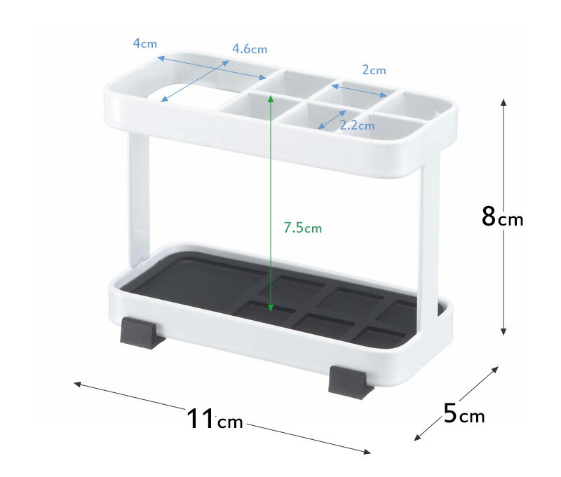 洗面台などのスペースをスタイリッシュに飾るトゥースブラシスタンド。 シンプルなデザインとスチールの無機質なフレームがいつものサニタリーをおしゃれに演出します。 フレームに触れる歯ブラシの柄の面積も少ないので、使用後でも乾きやすく衛生的です。 ●北海道・沖縄・離島は追加送料がかかります。注文確認後、送料修正しご案内いたします。 この商品はラッピング可能です。(+110円)ご希望の方は[ラッピングする]を選択のうえ、ご注文ください。tower トゥースブラシスタンド タワー シンプルなフレームで構成されたスタイリッシュな歯ブラシスタンド。洗面台などのスペースをスタイリッシュに飾るトゥースブラシスタンド。シンプルなデザインとスチールの無機質なフレームがいつものサニタリーをおしゃれに演出します。 フレームに触れる歯ブラシの柄の面積も少ないので、使用後でも乾きやすく衛生的です。 tower シンプルなカラーと、なめらかなスチールのフレーム。「tower」シリーズは、日常に役立つアイデアで実現した高い機能性と、おしゃれでモダンなデザインが人気の生活雑貨です。 いろんな雰囲気のお部屋に合わせやすいモノトーンカラーのアイテムも多く、日々の生活に馴染みやすく、使いやすいのも特長のシリーズです。 2カラーのバリエーション カラーバリエーションは「ホワイト」と「ブラック」の2色。洗面スペースの雰囲気やインテリア・雑貨に合わせて選べます。 細部までしっかり 歯ブラシの収納スペースが6つと、歯磨き粉のチューブが収納できる大きなスペースが1つ。上部のフレーム、底面のシリコンマット共にしっかり区切られているので、歯ブラシが倒れず使いやすいつくりになっています。また、付属のクッションを裏面に取り付けることで、スタンド自体のスリップを防止し、設置場所へのキズの防止にもなります。 いつでも清潔に シリコンのマットは取り外して洗うことができるので、とても衛生的。サッと洗って清潔さを保てるという安心感は、毎日使うものだからこその嬉しいアイデアです。 サイズ ● 製品の仕様 ○ 商品名 tower トゥースブラシスタンド ○ サイズ 約 幅11 × 奥行き5 × 高さ8 cm ○ 重 量 約 230 g ○ 素 材 フレーム:スチール(ユニクロメッキ+粉体塗装) マット:シリコン樹脂 ○ カラー ホワイト / ブラック ○ 入 数 1個 ○ 備 考 付属品・・・クッション 4個 ■注意点 ※安定感のある平らな場所に設置し、ご使用ください。 ※商品の色は、画像と実物とでは多少異なる場合がございます。色・イメージが違う等の理由による返品は一切お受けできません。予めご了承ください。 「tower」のアイテムをもっとさがす 「tosca」のアイテムをさがす