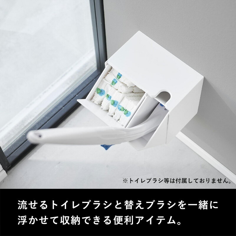 トイレの愛用品 流せるトイレブラシと替えブラシをまとめて、壁面に浮かせて収納できる便利な専用ホルダー。 斜めに開口するフラップ式で出し入れラクラク。各ホルダーは取り外せる構造になっているからお手入れも簡単です。 取り付けは「石こうボードピン」「木ネジ」で壁面に設置してお使いいただけます。 ●北海道・沖縄・離島は追加送料がかかります。注文確認後、送料修正しご案内いたします。 この商品はラッピング可能です。(+110円)ご希望の方は[ラッピングする]を選択のうえ、ご注文ください。tower ウォール流せるトイレブラシ&替えブラシホルダー タワー石こうボード壁対応 付属の石こうボードピン・木ネジで、トイレの壁面に浮かせて設置!流せるトイレブラシ&替えブラシをまとめて収納できる専用ホルダーです。 開閉しやすいフラップ式で、出し入れもスムーズに。床置きにしないことで、動かす手間もなくなり掃除もはかどります。 収納部は持ち上げて引き出すだけで簡単に取り外せる構造に。水洗いできるからホルダーのお手入れも簡単です。 ※流せるトイレブラシ等は付属しておりません。 トイレ掃除の愛用品 流せるトイレブラシのハンドルと替えブラシをまとめて1カ所に収納できる優れもの。浮かせて収納できるこちらのアイテムを使うことで、床掃除も劇的にラクになります。斜めに開口するフラップ式で、出し入れしやすく、ハンドルの先端を隠すように収納できるから、生活感もちょっぴりオフしてくれます。 取り付けは壁材に合わせて使えるよう、付属している「石こうボードピン」と「木ネジ」で簡単に設置できます。 出し入れしやすい場所、できるだけ見えにくい場所に設置するなど、思い思いの場所でお使いいただけます。 ※石こうボードピンを使用する場合は平らな面を有する金具(コインなど)、木ネジを使用する場合は+ドライバーをご用意ください。 〇ウォール流せるトイレブラシホルダー タワー 石こうボード壁対応 〇流せるトイレブラシスタンド タワー 〇替えブラシ収納付き流せるトイレブラシスタンド タワー ⇒ 商品カテゴリー>トイレ収納 ⇒ お掃除道具を整える収納雑貨 ⇒ まだまだある!towerで揃うトイレ×浮かせる収納 [ NEW ] 大人気のtowerなど山崎実業の最新アイテムはこちら ●商品の詳細● 商品名 tower ウォール流せるトイレブラシ&替えブラシホルダー タワー 石こうボード壁対応 サイズ 約 幅16.2 × 奥行き10~最大18.5 × 高さ15cm (ハンドルホルダー開口部内寸:約 幅4.9 × 奥行き8.3cm替えブラシホルダー内寸:約 幅9.3 × 奥行き8.3 × 高さ11.5cm) 耐荷重 約 1.5kg(ハンドルホルダー:約 500g、替えブラシホルダー:約 1kg) 材 質 ABS樹脂 重 量 約 520g 耐冷熱 -40℃~90℃ カラー ホワイト/ブラック 付属品 石こうボードピンセット×2(取り付けピーズ×2、クギ×12)、木ネジ×2 入 数 1個 備 考 <取り付け可能な壁面> 〇石こうボードピン 壁紙、布壁紙、ビニール壁紙貼りなどの石こうボード・薄ベニヤ 〇木ネジ 柱・板壁(厚さ1cm以上)・プリント合板(裏側に水平にサンがある場所)・裏に下地材(間柱)が入っている壁・木枠(幅1.5×厚さ2cm以上) <対応サイズ> 一般的な流せるトイレブラシのハンドル替えブラシ:約14個収納可能 ■注意点 ※ご使用予定の場所が取り付け可能な壁面かご確認ください。取り付けできなかった場合でも返品交換はお受けできません。ご了承ください。 ※流せるトイレブラシ等は付属しておりません。 ※木ネジでの取り付けの場合、プラスドライバーが必要です。木ネジ破損の原因になるため電動ドライバーでの取り付けはお避けください。 ※ピン・ネジは取り扱い説明書をご一読のうえ、正しく取り付けてください。設置後、製品が固定され安定しているか必ず確認してください。 ※サイズや形状によっては収納できないものもあります。 ※洗濯機などの振動する機器の近くや、ドアの近くなどの壁が振動する場所には取り付けないでください。 ※耐荷重を超える使い方はしないでください。また、耐荷重は壁面の強度や状況によって異なります。 ※商品の色は、画面上の画像と実物とでは多少異なる場合がございます。色・イメージが違う等の理由による返品は一切お受けできません。予めご了承ください。