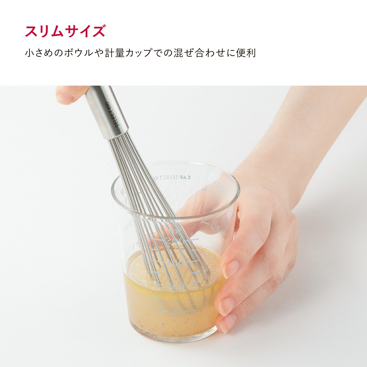 材質 18-8ステンレススチール サイズ詳細 224×35×35mm、重量81g 生産国 中国料理を通じて「幸せな時間作り」のお手伝いをする基本の調理道具SELECT100。「使いやすい道具はシンプルで美しく、手になじむ」をコンセプトにした、誰もが心地よく料理を愉しめる道具です。スリムタイプなので小さめのボウルや計量カップでの混ぜ合わせに便利なウィスクです。底あたりがよく効率的に混ぜられる茶せん形状の先端で、汚れがたまりにくい仕様です。衛生的なオールステンレス製。 注目のアイテム1,880円(税込)3,980円(税込)2,280円(税込)1,430円(税込)3,980円(税込)7,500円(税込)一緒に購入されている商品 貝印 SELECT100 T型 ピーラー |1,430円 貝印 シリコーンスプーン SELECT1001,100円 SELECT100 ドレッシングウィスク D1,100円関連商品はこちら 貝印 SELECT100 レードル 25cm1,540円 貝印 SELECT100 レードル 25cm1,386円 貝印 SELECT 100 ゆでざる DH3968円