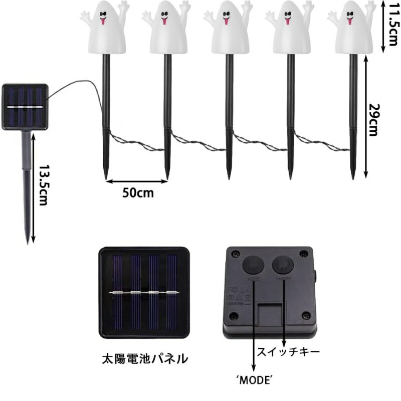 商品情報 ポイント 【ソーラー充電】 スイッチをオンにして、直射日光の下に置いて、日中は太陽光で自動的に充電し、暗くなると光センサーが感知して、ライトが自動的に点灯します。満充電状態で約8時間点灯できます。 【IP55防水】 防水仕様ですので、水しぶきの心配はありません。屋内での飾りはもちろん、屋外でも雨や雪の日にも安心でご利用いただけるようになります。 【幅広い用途】 クリスマス、ハロウィーン、パーティー、結婚式などいろいろな祭りに適合です。ご家庭のお庭やベランダ、玄関はもちろん、お店周りとホテル、商業ビル、フェンス、窓、クラブ、コンサート、カラオケ、ファッションショー、ダンスホール、レストラン、広場、街路樹に最適なライト。 【簡単な設置】 ハロウィーンソーラーライトは安全で、専門家による設置は必要ありません。あなたは日陰なしで日光の下で地面に太陽の光を挿入することができます。すばやく簡単にインストールできます。 ご注意 ※商品外装やタグは外国語となります。 ※実際の色味と写真の色味は光の当たり方やディスプレイの環境によって、多少異なる場合がございますのでご了承くださいませ。 ※製品品質向上、または製造時期により、予告なくデザイン及び仕様を変更する場合がございます。 メーカー希望小売価格はメーカーサイトに基づいて掲載しています