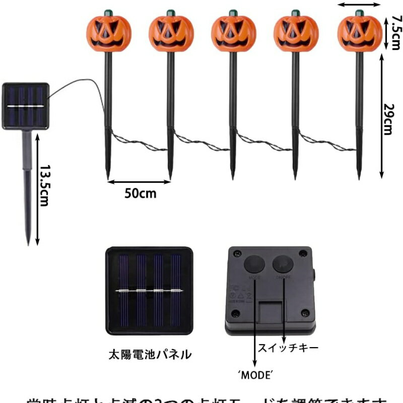 かぼちゃライト ガーデンライト ハロウィーン ソーラーライト 5 in 1 ハロウィン飾り ストリングライト ハロウィン飾り ランプ 埋め込み式 屋外 防水 自動点灯 消灯 省エネ 照明飾り お化け屋敷 お庭 雰囲気作り 飾り