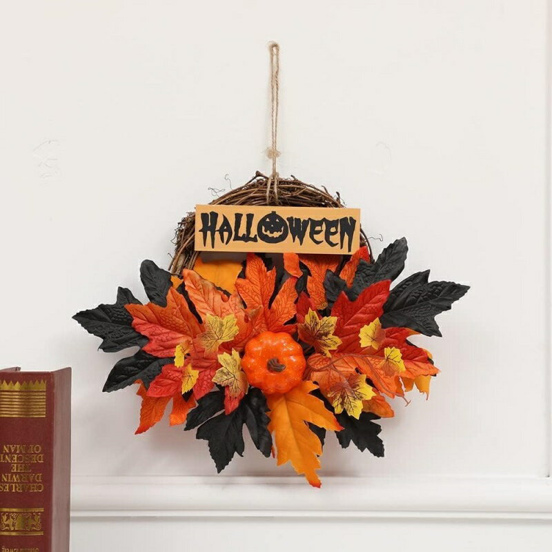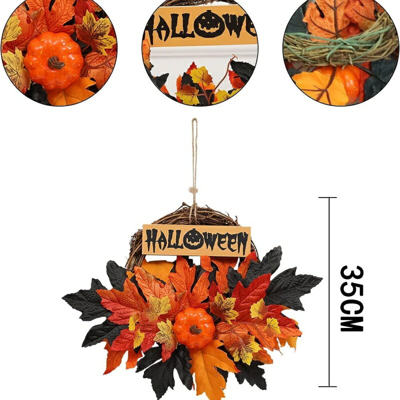 ハロウィン飾り ハロウィンリース 紅葉 かぼちゃん 花輪 Halloween ドアチャーム ドア吊り ウェルカムリース パーティー飾り ドア飾り 壁掛け 飾り お化け屋敷 装飾用 直径35cm