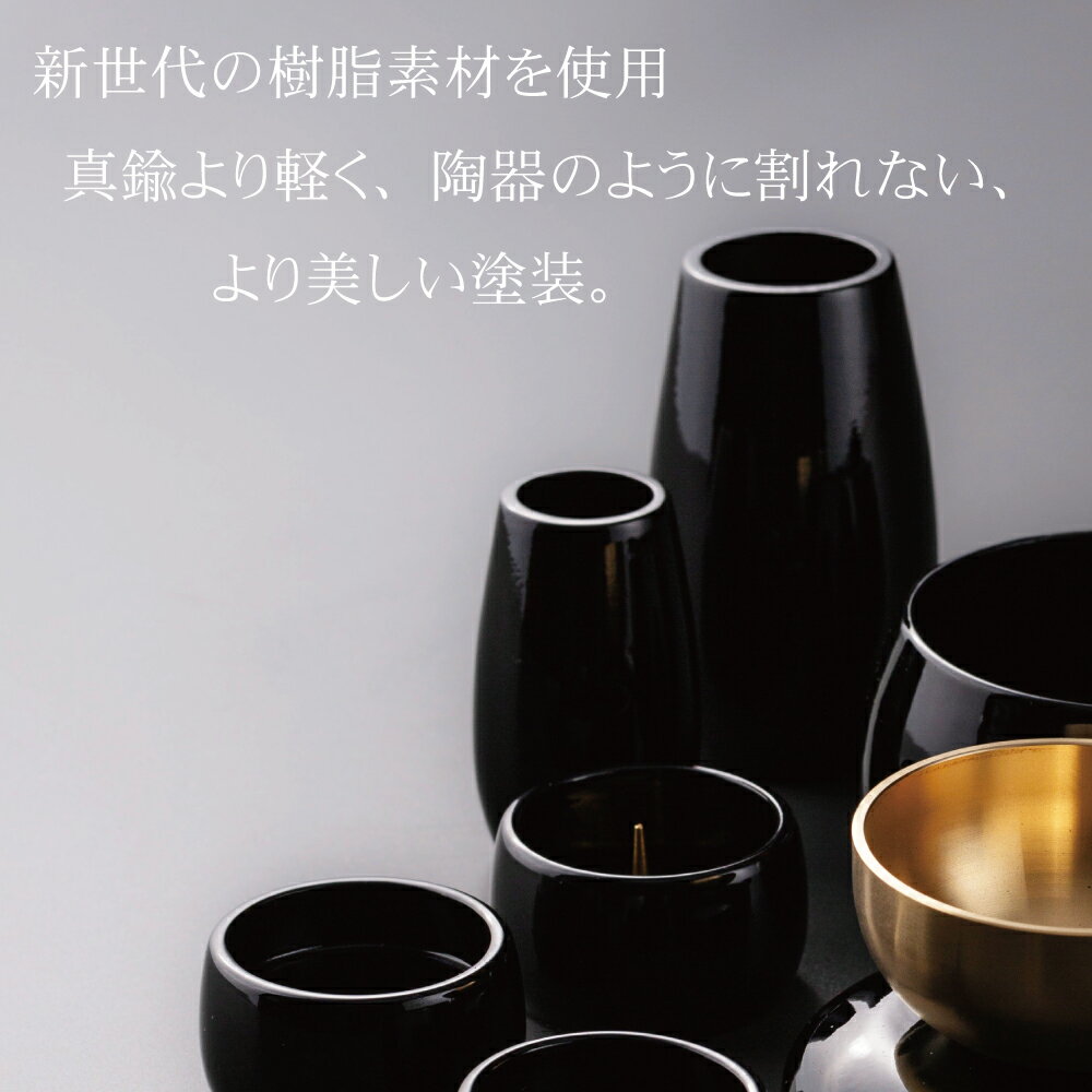 商品詳細 レグルス 9具足 2.5寸 素材 樹脂 香炉 サイズ 外径76mm×高さ45mm 花立 サイズ 外径46mm×高さ76mm 蝋燭立て サイズ 外径44mm×高さ24mm 茶湯器・仏飯器 サイズ 外径44mm×高さ24mm 線香立て サイズ 外径33mm×高さ55mm おりん(2寸/銅製)サイズ 外径60mmx高さ30mm りん台 サイズ 外径75mmx高さ25mm りん棒(木製)サイズ 長さ140mm 灰のいらない線香立てMk-2(線香立セットのみ)サイズ 外径20mm 高さ15mm(真鍮製) 備考 本製品は不飽和ポリエステル樹脂を使用しております。 カラー ・シャンパンゴールド ・ピュアホワイト ・ピュアブラック ・マットグリーン 樹脂仏具に新たなシリーズが新登場! レグルス 樹脂仏具 9具足 香炉 花立 蝋燭立て 茶湯器 仏飯器 線香立て おりん おりん台 りん棒 従来の銅製仏具から素材を樹脂に変えて作成した2.5寸サイズのモダン仏具です。 届いたその日にすぐにお祀りできる9具足セットです。おりんもセットしたスターターキットになります。 良品質で極めて手ごろな価格で提供させていただきます。 樹脂とは思えない重厚感と、美しい塗装の仕上げ。 丸みを帯びたデザインは可愛らしさとしとやかさが共存し、お仏壇に華やかさを加えます。 樹脂製仏具の良い所: ・軽量で扱いやすいので設置や移動が簡単。 ・衝撃に強く耐久性が高い。子供やペットがいる環境でも安心。 ・汚れに強く水拭き等のお手入れが簡単。 これら利点を活かして、真鍮に負けない重厚感と仕上がりにしております。 モダン仏壇などにおすすめのスタイリッシュな仏具セットです。 ※人気の「灰のいらない線香立てMk-2」が付いたお得なセットもございます。 MG:マットグリーン カイドク館ではどこよりも安く・お買い得商品をモットーに販売しております。公式サイトならさらにお安く、最安値を保証いたします! レグルス シリーズ(各色・各セット)はこちら▼ その他おすすめシリーズをご紹介▼(画像クリックで商品ページへ)