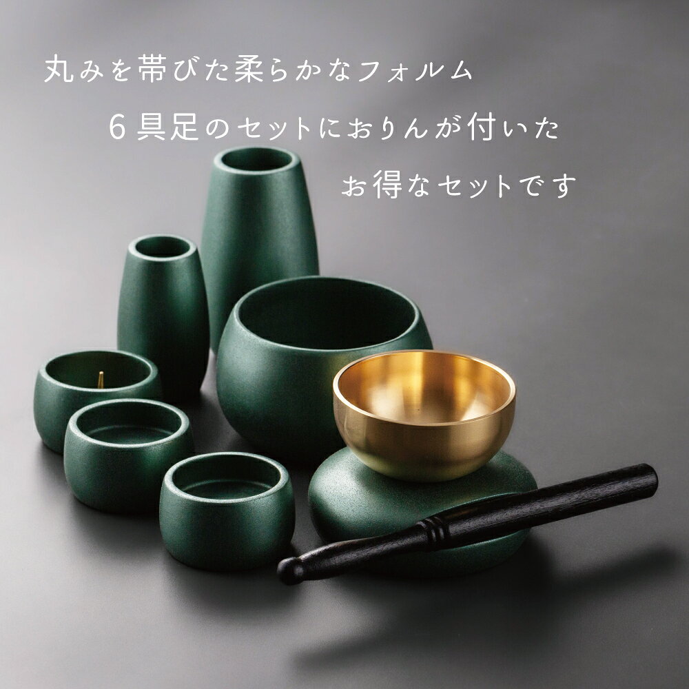 【最強配送対応】仏具 セット レグルス 9具足 2.5寸 マットグリーン モダン仏具 樹脂仏具 おしゃれ 仏壇 香炉灰 クリスタルビーズ