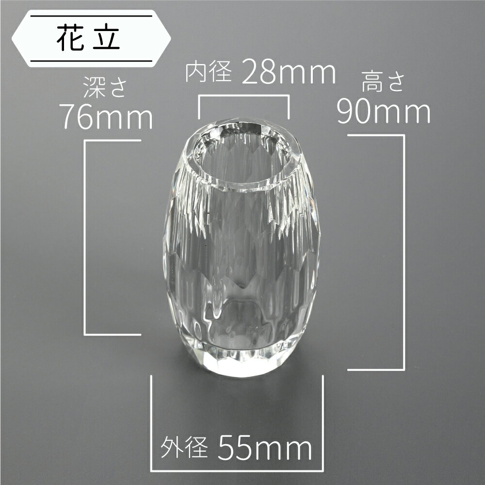 商品詳細 クリスタル仏具セット ベガ 3.0寸 3具足 500gビーズセット 素材 K7クリスタルガラス 香炉サイズ 外径90mm(内径55mm)x高さ53mm 深さ35mm 花立サイズ 外径55mm(内径28mm)x高さ90mm 深さ76mm 蝋燭立てサイズ 外径50mm(内径35mm)x高さ33mm 深さ15mm 備考 こちらの商品は『K7グレードのクリスタルガラス』を使用しております。 製造工程の関係上、ガラス内部に気泡や徐々に冷めていくときの跡が出る場合がございますが、品質上問題はありません。 予めご了承ください。 カイドク館ではどこよりも安く・お買い得商品をモットーに販売しております。公式サイトならさらにお安く、最安値を保証いたします! K7グレードのクリスタルガラスを用いており、K9グレードの製品よりもお求めやすく、それでいて輝きと透明感も妥協しない、満足度の高い製品に仕上げました。 香炉、花立、蝋燭立ての基本が揃った3具足セットにまとめました。 少し大きめの3.0寸サイズで、どっしりとした安定感と重厚感が魅力です。 多面カットのデザインで、光の角度によって違う輝きを放ち、幻想的な空間を演出します。 こちらの商品は『K7グレードのクリスタルガラス』を使用しております。 当店で通常販売している2.5寸のベガとは材質が違うため、色味に若干の違いがあります。 ご留意ください。 今までと違う雰囲気にしてみたいけどクリスタル製は使ったことがない…という方におすすめの、お手頃価格の商品です。 その他おすすめシリーズをご紹介▼(画像クリックで商品ページへ)src="https://image.rakuten.co.jp/kaidokukan/cabinet/12290624/12290972/12291023/k7cry-vg03-cl.jpg?_=9tef">