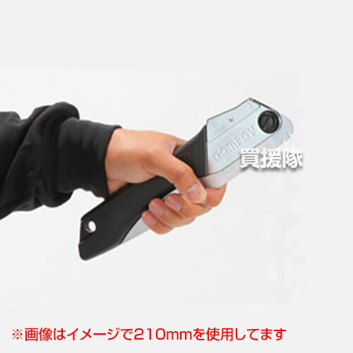 納期について:メーカー直送品(代引き不可)【のこぎり 本体 ノコギリ 240 鋸 剪定 コンパネ 枝打ち 未来目 アサリなし 衝撃焼入れ 防錆めっき 日曜大工 DIY 工具 植木 庭木 枝切り 園芸 GOMBOY240 万能目 収納ケース付 携帯ケース付 簡易サック付】 全世界標準。 幅広い用途で活躍中! モデルチェンジを行った210mm・240mmは、さらなる進化を果たしました! ゴムボーイはお客様に愛されて30年のロングラン商品です。 世界で初めて鋸にゴムグリップを採用し、新しい次元を提供しました。 また、未来目という当社オリジナルの特殊目立てを施しているため、縦・横・斜めのあらゆる方向からの切断に抜群の威力を発揮します。 鏡面研磨仕上げ(アサリなし刃)により、綺麗な切り口と強靭な刃先を実現しました。 折込タイプで携帯性が良く、ワンタッチ開閉が出来るため、不安定な場所でも便利にお使い頂けます。 【職業:仮枠大工】【用途:コンパネ】 コンパネは縦横の繊維が混在した板です。 ゴムボーイの未来刃が縦の長い繊維を削りとるため、目詰まりを防止します。 コンパネは、再利用することが多く、表面にコンクリートが付着しています。 ゴムボーイは刃の背表面に超硬焼き入れをしているため、コンパネについたコンクリートに、鋸刃の背をケレンとして使われています。 コンパネは、大変、硬い木材です。 ゴムボーイは、刃先を衝撃焼き入れしているため、硬く耐久性に優れています。 【職業:造園】【用途:生木剪定】 枝の元には、縦・横・斜めの繊維が混在しています。 未来目の縦挽き刃が枝の元の切断時に目詰まりせず食い込んでいきます。 アサリがないため、切り口が滑らかで保護膜を形成しやすいため、剪定鋸として最適です。 携帯性にすぐれ、ワンタッチ開閉ができるため、脚立の上での作業にも、大変便利です。 【職業:果樹園】【用途:生木剪定】 りんご園の夏剪定鋸として定番になっています。 青森県の黒りんご試験場の技師の方は、多数ゴムボーイ万能目を使用されています。 腐乱病とは、切り口が荒れて腐る病気です。 ゴムボーイによる剪定は、切り口が綺麗なため、腐りを起こさず、樹木も痛めることがないので、安心してお使い頂けます。 【職業:ゴルフ場コース管理】【用途:生木剪定】 ゴルフ場のコース管理では、大工仕事と剪定の作業があります。 ゴムボーイ万能目はどちらの作業にもすばやい切断力を発揮し、携帯性にも優れているため、最適です 【職業:森林ボランティア】【用途:生木間伐】 間伐の中でも、雑木林のようになった木を取り除いて行く一番最初の間伐に最適です。 安全で携帯性に便利であることから、森林ボランティアや里山ボランティアにおいて、大勢の方が使われています。 未来目が切り屑を掻き出すため刃の中に溜まらず、いつも軽快に刃が食い込んでいきます。 これが、切断スピードに大きく影響し、すばらしい効果を発揮します。 切断時の震動をおさえるスチールプラットフォームとゴムグリップの絶妙なバランスは切れ味に感動を覚えます。 仕様 商品名 ゴムボーイ 万能目 本体 240MM 121-24 品番 121-24 JANコード 4903585121244 【サイズ】 ・[収納時] 270×60×20mm ・[使用時] 505×60×20mm 重量 0.265kg 刃渡り 240mm 目数 10枚目 切幅 1.3mm 刃厚 1.4mm 【用途】土木工事・建築建前工事・造園剪定。 ●アサリ無し鏡面研磨仕上げ。 ●未来目縦・横・斜め切断可能。 ●衝撃焼入。 アサリなし・・・鏡面研磨仕上げ。木に優しい美しい切り口。 未来目・・・特殊目立て未来目で縦・横・斜めあらゆる方向の切断がスムーズに。 衝撃焼入・・・強靭な鋼にさらに高度な焼入れを刃の先端部にのみ行い、刃先の耐摩耗性が数倍アップ。 ゴムボーイ 万能目240mm [替刃]はこちら