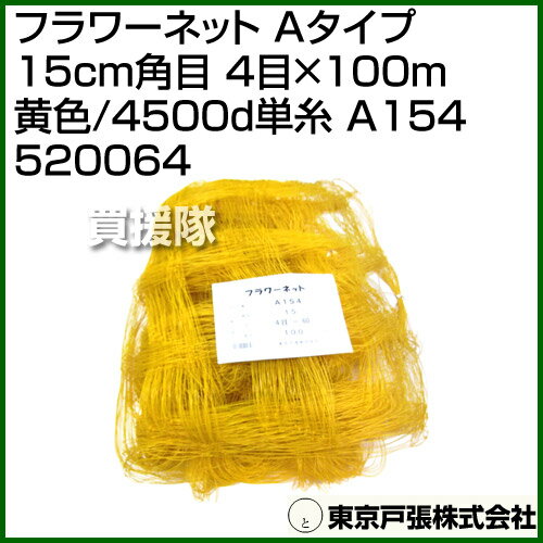 東京戸張 フラワーネット Aタイプ 15cm角目 4目×100m [黄色/4500d単糸] A154 520064 [カラー:黄色] 【花 作物 野菜 倒伏 倒れ 防止 畑 菜園 圃場 菊 カーネーション 百合 ユリ 竜胆 リンドウ 葱 農業 資材 用品】【おしゃれ おすすめ】[CB99]