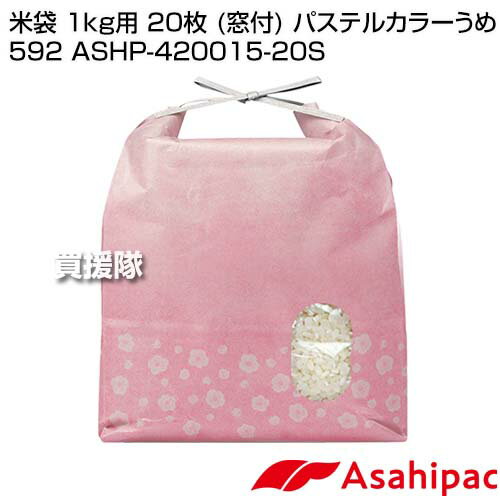 ★P5倍★クーポンで最大1000円OFF★アサヒパック 米袋 1kg用 20枚 (窓付) パステルカラーうめ 592 ASHP-420015-20S 【保湿タイプ 紐付き 米袋 紙袋 クラフト 紙 窓付き 玄米 新米 精米 保管 保存 贈答用 贈り物 プレゼント おすそ分け プチギフト 包装材】【おしゃれ おすす