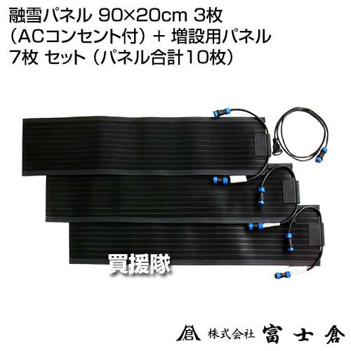 ★ポイント最大10倍&最大400円OFFクーポン★12月1日限定★富士倉 融雪パネル 90×20cm 3枚(ACコンセント付) + 増設用パネル7枚 セット (パネル合計10枚) 【融雪マット 除雪作業 負担 軽減 融雪 熱 発熱 電気 電動 電熱 ケーブル 雪 融かす 凍結防止 玄関先 階段 消雪