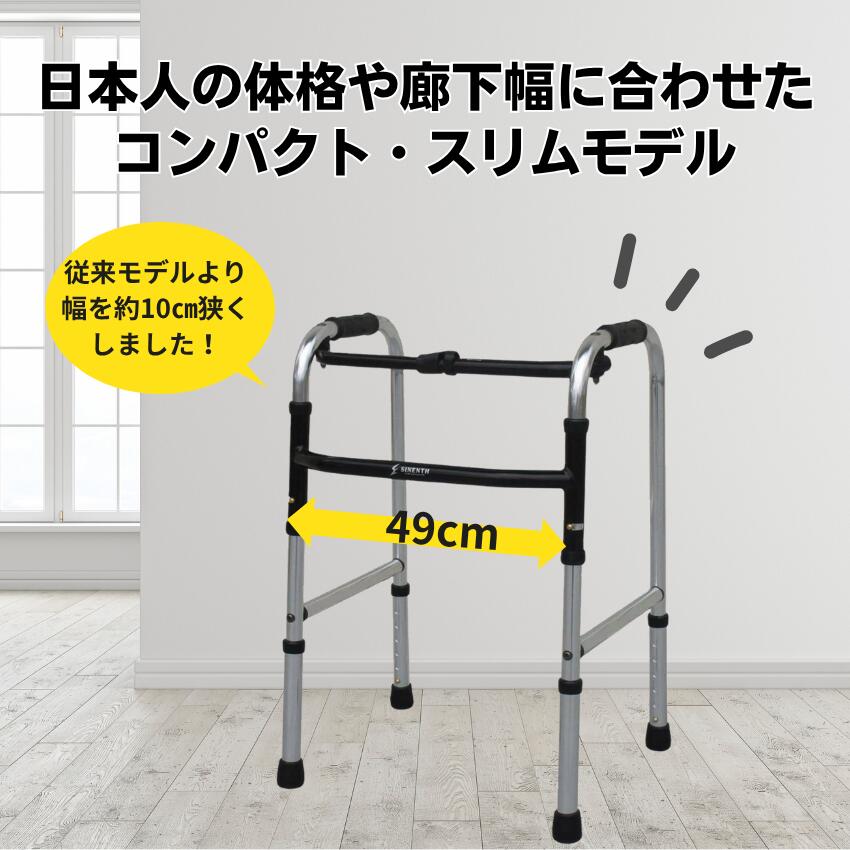 製品仕様 商品名 スリムフレームウォーカー 固定型 WFS-4968 サイズ ○サイズ:幅49×奥行45×高さ68.5〜81(6段階)cm ○収納サイズ:幅49×奥行11×高さ69cm ○内寸:38cm ○最大使用者体重:100kg 重量 2.55kg 素材・材質 フレーム:アルミ(一部スチール) グリップ:PVCゴム 商品説明 使いやすい49cm幅の固定型歩行器 ○新しいスタンダードサイズ!49cm幅 日本人の体格、廊下の幅に合わせて、従来モデルより幅を約10cm狭くしました。 ○ワンタッチ折りたたみ式(全機種共通) 使用しないときはワンタッチで折りたため、収納しておく事ができます。 ○6段階高さ調節 ご使用になる方の体格に合わせてハンドルの高さを68.5cm〜81.0cmまで6段階に調節ができます。 注意点 ※画面上と実物では多少色具合が異なって見える場合もございます。ご了承ください。 ※当店は介護保険の指定事業者(特定福祉用具販売事業者)ではございません。 介護保険でのご購入はできませんので予めご了承ください。 配送について 通常、ご注文受付後、1〜2営業日で発送いたします。 ※複数店で在庫を共有しているためご注文のタイミングで在庫を確保できない場合がございます。万が一在庫が確保できない場合はメールにてご連絡いたします。 メーカー シンエンス