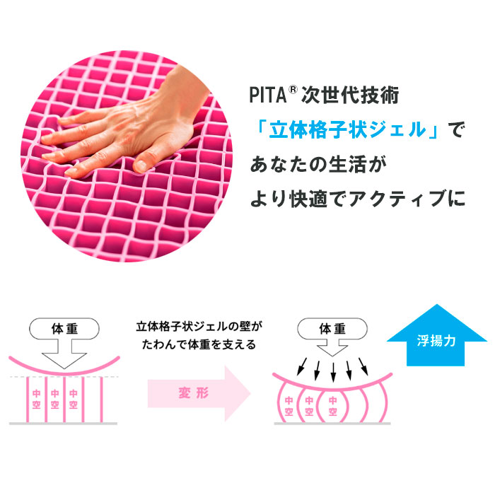 車椅子 車イス クッション ピタ・シートクッションW 35・55・70 ナノ・ファイバーカバー PITA 立体格子ジェルファンディーナ
