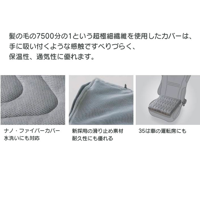 ※メーカー直送商品となります。 すべりにくく、肌にやさしいナノ・ファイバーカバー ※中身はピタ・シートクッションと同じです。 髪の毛の7500分の1の超極細繊維を使用したカバーは、手に吸い付くような感触で、滑りづらく、保湿性、通気性に優れています。 【PTW35】 サイズ:40×40×厚さ3.5cm 重量:1.1kg 【PTW55】 サイズ:40×40×厚さ5.5cm 重量:1.25kg 【PTW70】 サイズ:40×40×厚さ7cm 重量:2.1kg 材質 カバー:ポリエステル100% 中材:熱可塑性エラストマー、ウレタンフォーム メーカー:ファンディーナ