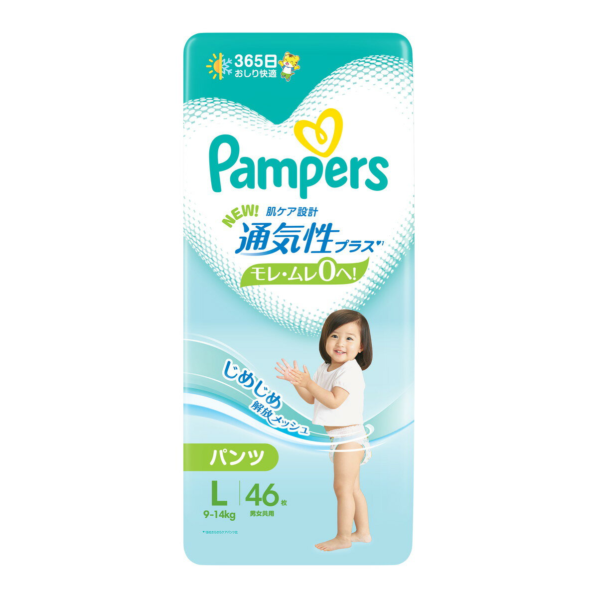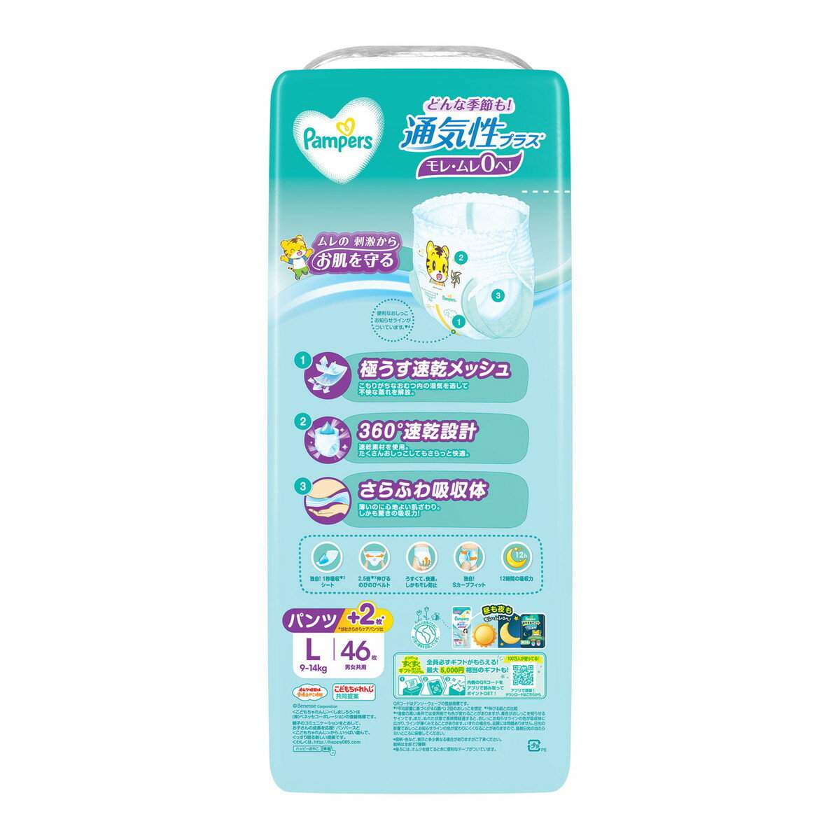 【送料お得・まとめ買い×4個セット】P&G パンパース 通気性プラス パンツ Lサイズ 9-14kg 46枚 男女共用 子ども用紙おむつ