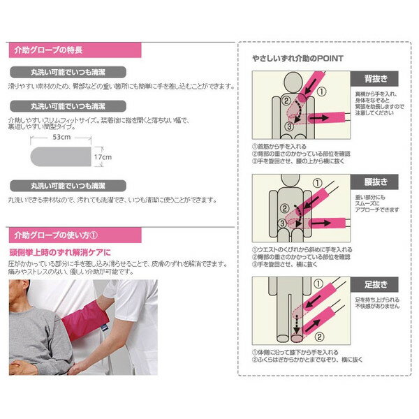 ●サイズ/幅17×長さ53cm ●材質/ナイロン100% ●生産国/日本 ●洗濯機可(弱30℃) メーカー:ケープ ※平日15時までのご注文で、奈良県より平日1-3営業日以内にメール便発送いたします。 メール便は「日本郵便(クリックポスト)【ポスト投函・日時指定不可・追跡有り】」です。 在庫は他店舗と共有している為、一時的な欠品等により発送が遅れる場合がございます。 予めご了承くださいませ。 ※本商品は【送付先が沖縄・離島の方】でも、ご注文可能です。〈特長〉 ●滑りやすい素材を使用 滑りやすい素材のため、臀部などの重い箇所にも簡単に手を差し込むことができます。 ●使いやすいサイズ・形状 介助しやすいスリムフィットサイズ。装着後に指を開くと落ちない幅で、裏返しやすい筒型タイプ。 ●丸洗い可能でいつも清潔 丸洗いできる素材なので、汚れても洗濯でき、いつも清潔に使うことができます。