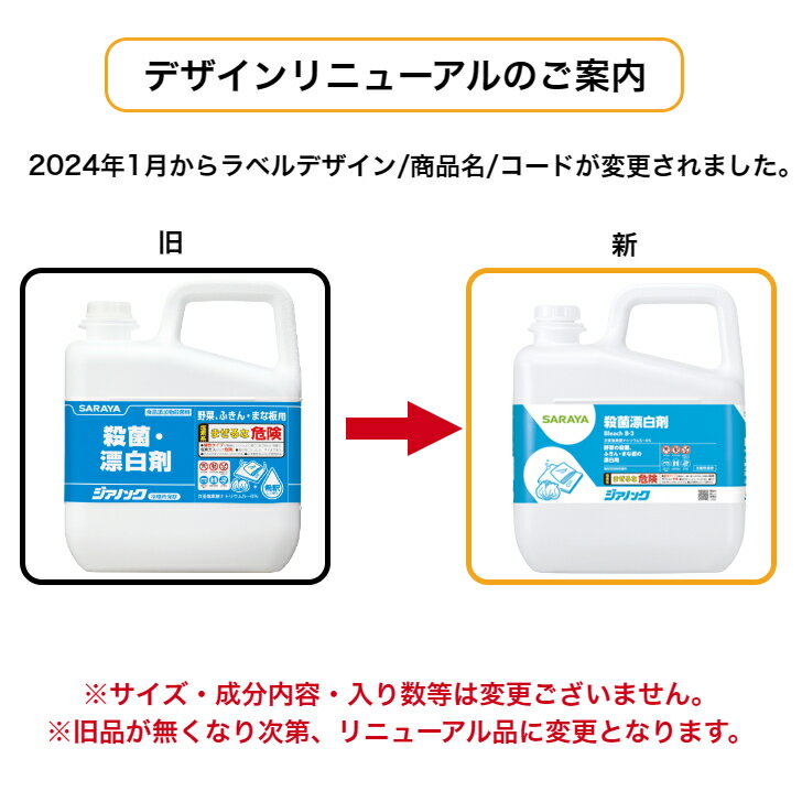 サラヤ 殺菌・漂白剤 ジアノック 5kg×3個(ケース販売)/次亜塩素酸ナトリウム5~6%の食品添加物殺菌料/送料無料/サラヤ/SARAYA/ まな板やふきんの除菌・漂白、野菜の殺菌/排泄物・嘔吐物の処理 メーカー:サラヤ(SARAYA)食品添加物殺菌料。まな板やふきんの除菌・漂白、野菜の殺菌に。調理器具やふきんの除菌・漂白や野菜の殺菌に。次亜塩素酸ナトリウム5〜6%の食品添加物殺菌料です。 商品詳細容量:5kg×3個使用期限:無 目安(未開封):製造より2年注意事項※商品パッケージや仕様は予告なく変更される場合がありますので予めご了承ください。※複数店舗で販売の為、表記している在庫と実在庫は異なる場合がございます。予めご了承下さい。 2