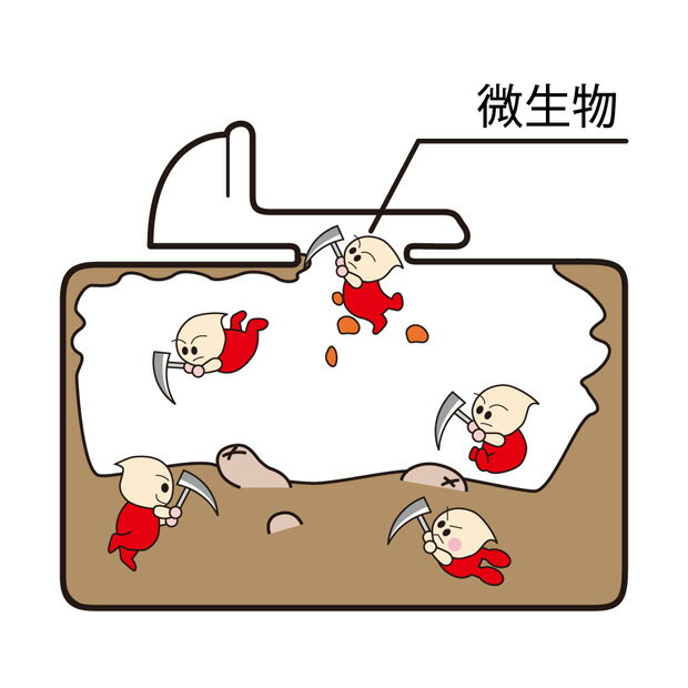 人気の「汲み取りトイレバイオ消臭」の中身はそのままにスリムなパッケージにすることで日本全国「送料無料」でポスト投函便にてお届けできるようになりました。 バイオ(微生物)を利用した環境にやさしい消臭剤です。バイオ(微生物)が悪臭源を分解し無臭な物質に変化させます。悪臭がなくなることでハエなどの害虫発生防止にも役立ちます。継続使用によって効果が維持します。 ポスト投函品のため他の商品との同梱はできません。 他の商品と合わせてご注文の場合は、こちらの商品をご注文ください。>>> これは便利!商品の特長 悪臭を元から除去 即効性のある硫酸鉄が臭いを抑え、悪臭源をバイオ(微生物)が分解し消臭!悪臭を元から除去します。 害虫も寄りつかない 臭いを消すことで害虫が寄りつかなくなります。便槽は酸欠状態になり、ウジが生息しにくい環境になります。 ウジが発生する時期より2〜3ヶ月前から継続使用しますと、夏場の発生が少なくなります。 環境にやさしい 味噌や醤油に使われている物と同類の、自然界に存在しているバイオ(微生物)を使用しています。 週に1回入れるだけ! 使用方法は簡単。1週間に1回本品をトイレに投入するだけです。定期投入によって効果が持続します。 開封時のお願い この商品は、ポスト投函できるように透明なチャック付きの簡易パッケージを使用しています。 最初にご使用になる時は、はさみでチャックの上の部分を切り取ってご使用ください。 開封後は、チャックを閉じて保管してください。 つかい方 ●投入するだけ 1.初回使用時のみ、3パックをそのままトイレに投入します。 2.次回からは週に1〜2パックを定期的に投入すれば、悪臭の発生をおさえます。   ※悪臭の度合い、便槽の大きさ、使用人数などにより、使用量を加減してください。 ●どのくらいで効果が出るのか 1.便槽内の汚物の量や微生物の活動具合にもよりますが、約1週間で効果があらわれます。 2.微生物は7〜10日間程度活動します。 3.微生物が便槽内にとどまるため、効果が持続します。 開発にあたって 「暮らしは快適にしたい、でも、いつまでもきれいな自然であってほしい」という考えのもと、バイオテクノロジーをいち早く取り入れ、自然を壊すことのない商品づくりをアズマ工業は進めてまいりました。この汲み取りトイレバイオ消臭に含まれるバイオは自然に生息する土壌微生物です。自然に優しく、確実に効くという理由から、発売以来20年以上愛され続けています。 ご注意 ・用途以外には使用しないでください。 ・幼児の手が届くところに置かないでください。 ・食用不可。食べられません。 ・本品は消臭剤であり、殺虫剤ではありません。 ・便器に直接付着すると赤く着色する場合があるので、洗い流してください。赤くなってしまった時は、還元性漂白剤を使用してください。 ・保管の際は、直射日光の当たらない、高温多湿にならない場所に置いてください。 ・開封後は、チャックを閉じて保管してください。 応急措置 ・飲み込んだときは水を飲ませてください。 ・目に入ったときは、こすらずに水で充分洗い流してください。 ・皮膚についたときは、水で充分洗い流してください。 ・異常のあるときは医師に相談してください。 よくある質問 Q:使用したら虫が増えたのですが ? A:すでにウジの発生している便槽に使用すると、ウジが生息しにくい環境になり、いっせいに表面に表れてくることがあります。この場合は、殺虫剤を併用して駆除し、その後、本品のみを継続使用すると、ウジの発生が抑制されます。 Q:水洗トイレに使用してもいいですか ? A:水洗トイレには使えません。成分中の鉄分が便器に付着し、赤茶色に変色してしまいます。この色は、通常の洗剤では落とすことが出来ません。還元性漂白剤を使う必要がございますのでお気をつけください。 Q:使っていたら便器が茶色くなってしまいました。落とすにはどうしたらいいですか ? A:還元系漂白剤を使用すると落とすことができます。洗剤を染み込ませたトイレットペーパーを茶色い部分に湿布するように貼りつけ、しばらく置いてからブラシでこすってください。
