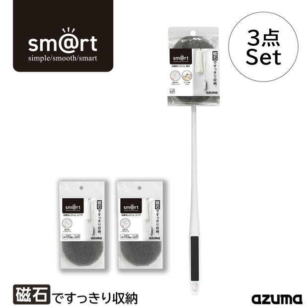 アズマ公式 sm@rt 浴槽洗い スリム 柄付 (スペア4枚付) 全長48cm 浴室ブラシ 浴室 お風呂 風呂 風呂場 バススポンジ 柄付き お風呂掃除 掃除 磁石 マグネット 収納 浮かせる収納 sm@rt765