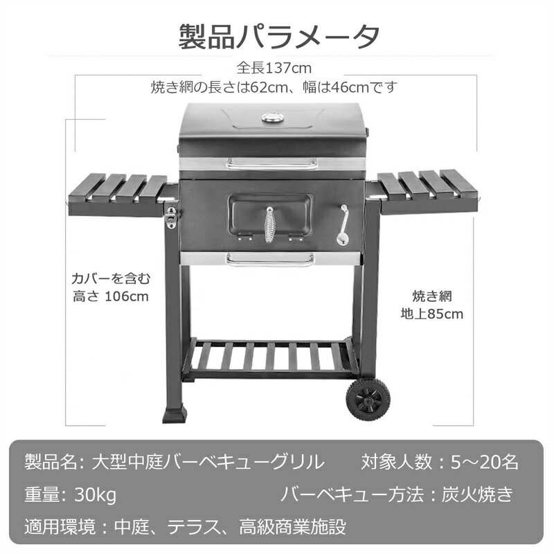 【広い調理エリアを備えたBBQグリル】505平方インチのホーロー鉄調理焼き網と289平方インチの保温ラックを含む合計794平方インチの調理エリアは、5~20人の大規模なパーティーやイベントに役立ちます。 調理焼き網とウォームラックは耐久性に優れ、お手入れが簡単なホーロー鉄素材で作られており、均一かつ比較的早く調理できます。 ? 【高さ調節可能なチャコールトレイ】コールグリルは左右両側に昇降ハンドルが付いておりハンドルを転がしてチャコールトレイを上げ下げすることができます。 したがって、グリルや燃料をいじることなく、暗黙の温度が即座に上昇します。底部にはキャスターが付いているので移動も簡単です. ? 【ユニークなデザイン】蓋に取り付けられた温度計は温度変化を瞬時に示します。 2 つのサイド ダンパー設計により、空気の流れが最大限に強化され、効率的な燃焼と温度制御が可能になり、調整可能なキャップ付きの煙突が追加の空気の流れを提供します。 両側の折りたたみ式サイドシェルフは十分な作業スペースを提供し、使用後の保管も簡単です。統合されたS字フックと大きな底棚により、複数のグリルアクセサリーを手の届く範囲に保管できます。 ? 【炭に簡単にアクセスできるドアと灰皿】この頑丈な特大バーベキューチャコールグリルには、フロントカバーにクールタッチの金属ハンドルが付いた個別のデュアルドアがあり、調理中に燃料を追加したり(または熱い石炭を再配置したり)、火を使わずに調理できます。 食品を移動するか、グリルを取り外します。 フルサイズのプッシュアウト灰皿は取り外し可能で、灰を素早く簡単に掃除できます。