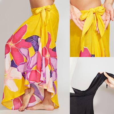 商品説明 華やかな水彩で大胆に描かれたプルメリア柄のパレオスカート。 スカート仕立てになっているので、着用が簡単です。ウエスト部分をロールアップしてスカート丈の調整も可能です。 ステージの早着替えにも大活躍し、レッスンや移動着にもお使いいただけます。 ススカートとしては勿論、胸元まで上げてホルターネックやベアトップのワンピースにもアレンジできます 華やかな水彩で大胆に描かれたプルメリア柄のパレオスカート。 スカート丈 94cm ・素材:レーヨン100%