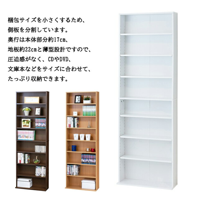文庫本棚 W600S 幅60×奥行き22(17)×高さ180cm 組立式 クロシオ 【本棚 60】