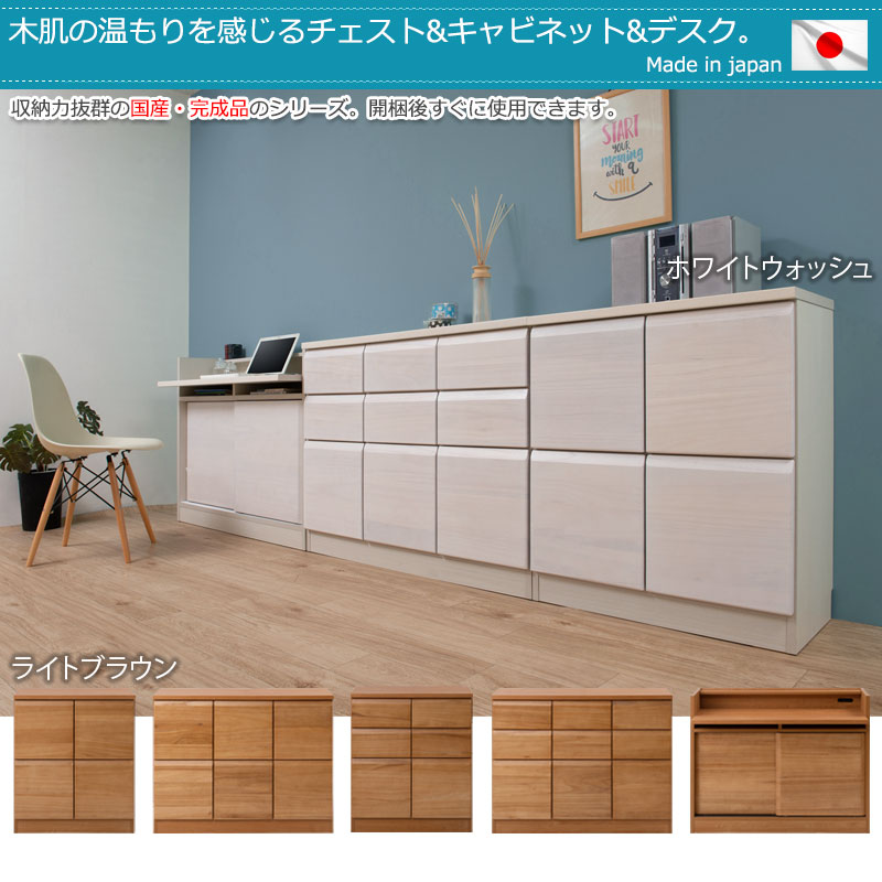 【Enix】天然木桐材を使用した日本製・完成品のスクエアキャビネット 幅107.5 奥行35.5 高さ83cm 扉+引出しタイプ ホワイトウォッシュ ライトブラウン プッシュ式 扉付 北欧 大川 家具 リビング 収納 木製 SQUARE 棚 ラック 台 チェスト