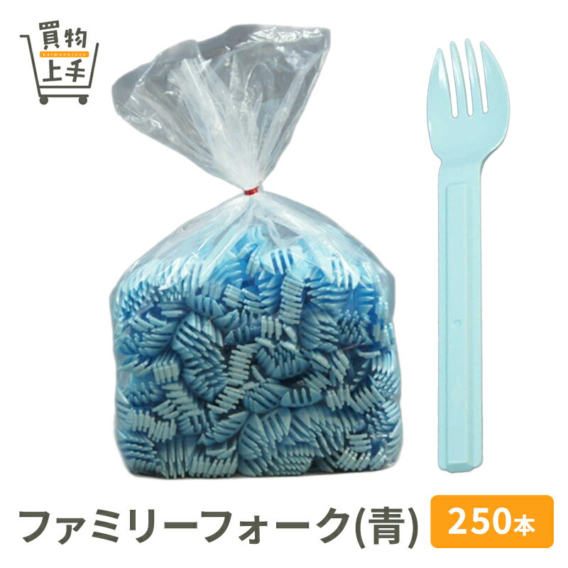 ファミリーフォーク(青) 250本入 [フォーク プラフォーク プラスチック 業務用 大容量 資材 使い捨て 祭 バザー 学園祭 縁日 フリーマーケット 買物上手]
