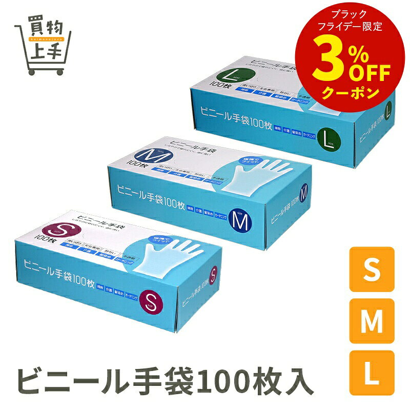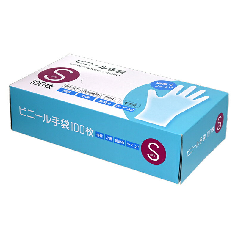 ビニール手袋100枚入 S M L [使い捨て 手袋 粉なし 半透明 左右兼用 掃除 介護 毛染め]