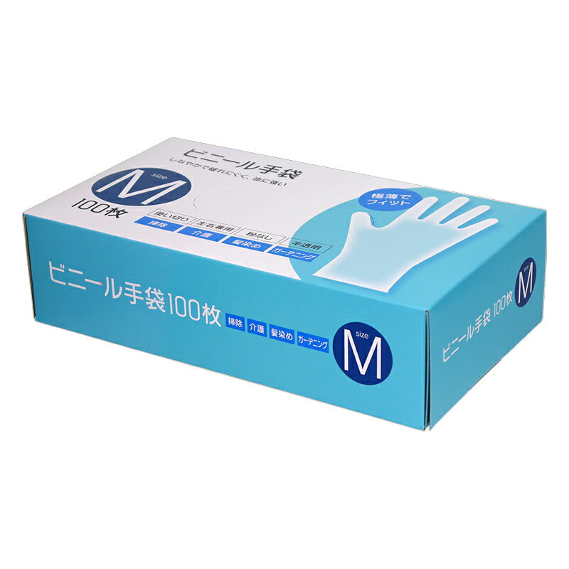 商品名 ビニール手袋 100枚入 極薄でフィット!しなやかで破れにくく、油に強い! 材質 塩化ビニル樹脂(可塑剤) サイズ 全長:23.0cm(S,M,L) 掌まわり:S(17.0cm)、M(19.0cm)、L(21.0cm) 中指の長さ:S(7.1cm)、M(8.0cm)、L(8.8cm) 枚数 100枚 特徴 ★ズレにくく、指先や手のひらにフィットする手袋です。 ★左右兼用ですので、ムダなく使えます。 ★粉なしのタイプですので手に粉がつきません。 ★天然素材の手袋に比べ、油に強い塩化ビニル樹脂製です。 使用上の注意 ◆体質によってはアレルギー反応等により、かゆみ・かぶれ・発疹等を起こすことがあります。異常を感じたら使用を中止し、医師にご相談ください。 ◆高濃度の薬品や溶剤(ガソリン・ベンジン等)には使用しないでください。膨潤・浸透・劣化の恐れがあります。 ◆ビニールは60℃以上の熱に弱いため、本品を着けて熱いものに触れないでください。 ◆火元や熱源のそばに置かないでください。燃えたり変形したりする恐れがあります。 ◆爪先・刃物等の鋭利なものでキズをつけないようご注意ください。 ◆感電の恐れがありますので、電気作業に使用しないでください。 ◆機械等へ手袋が巻き込まれないよう十分ご注意ください。 ◆本品は使い切りタイプです。繰り返しのご使用は避けてください。 ◆高温・多湿・直射日光を避け、常温で保管してください。 ◆食品加工には適していません。調理用には使用しないでください。 原産国 中国 関連キーワード 手袋、使い捨て、使い切り、ビニール、粉なし、半透明、左右兼用、清掃、介護、ガーデニング、DIY、毛染め、S、M、L、買物上手
